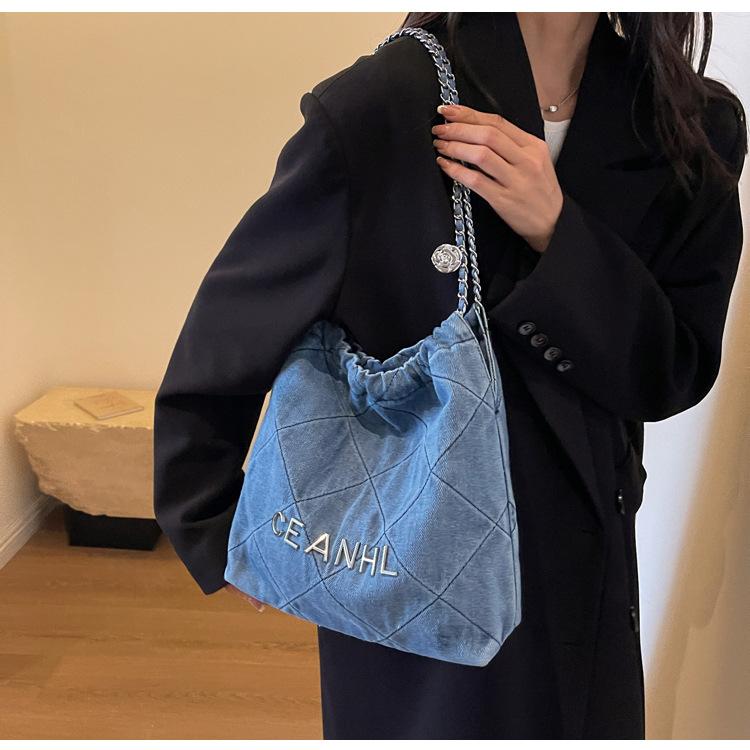 Bolso grande de estilo coreano popular de este año para mujer, nuevo bolso de hombro tipo cubo de alta gama retro combinable para otoño e invierno 2024