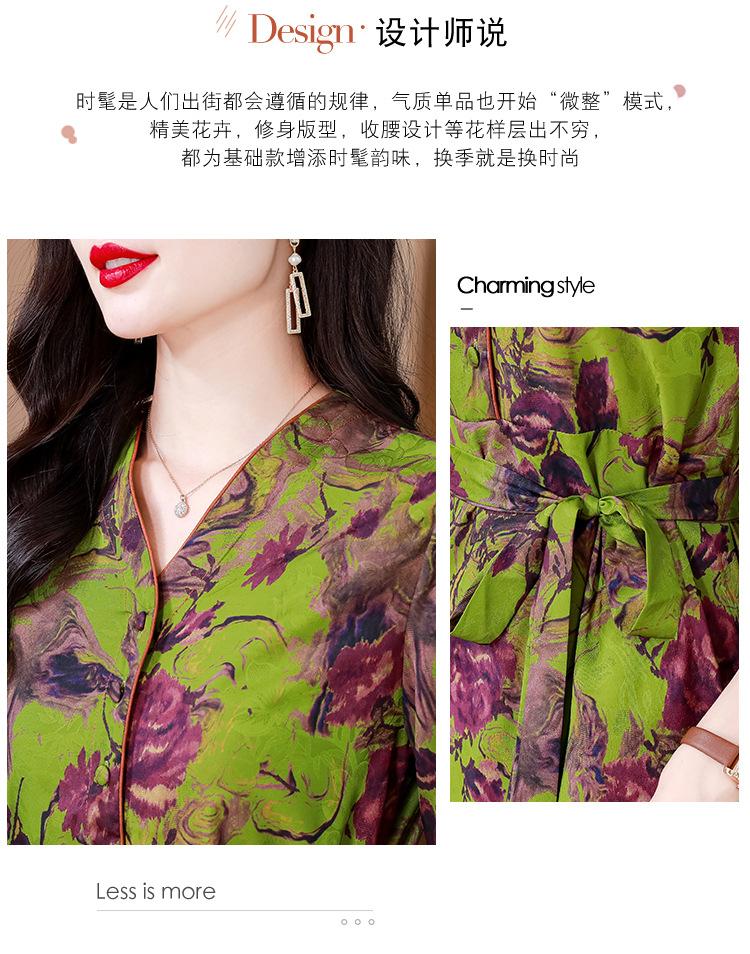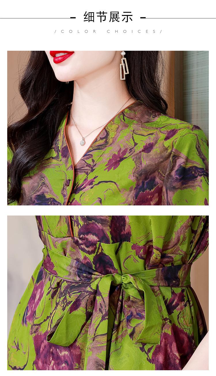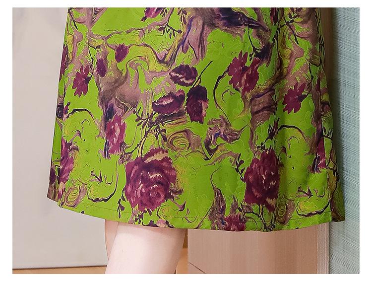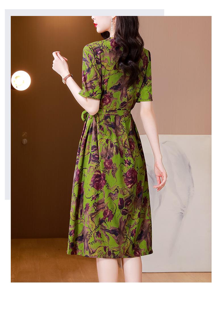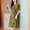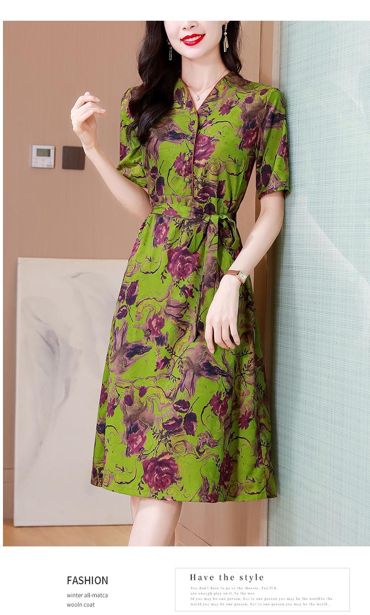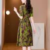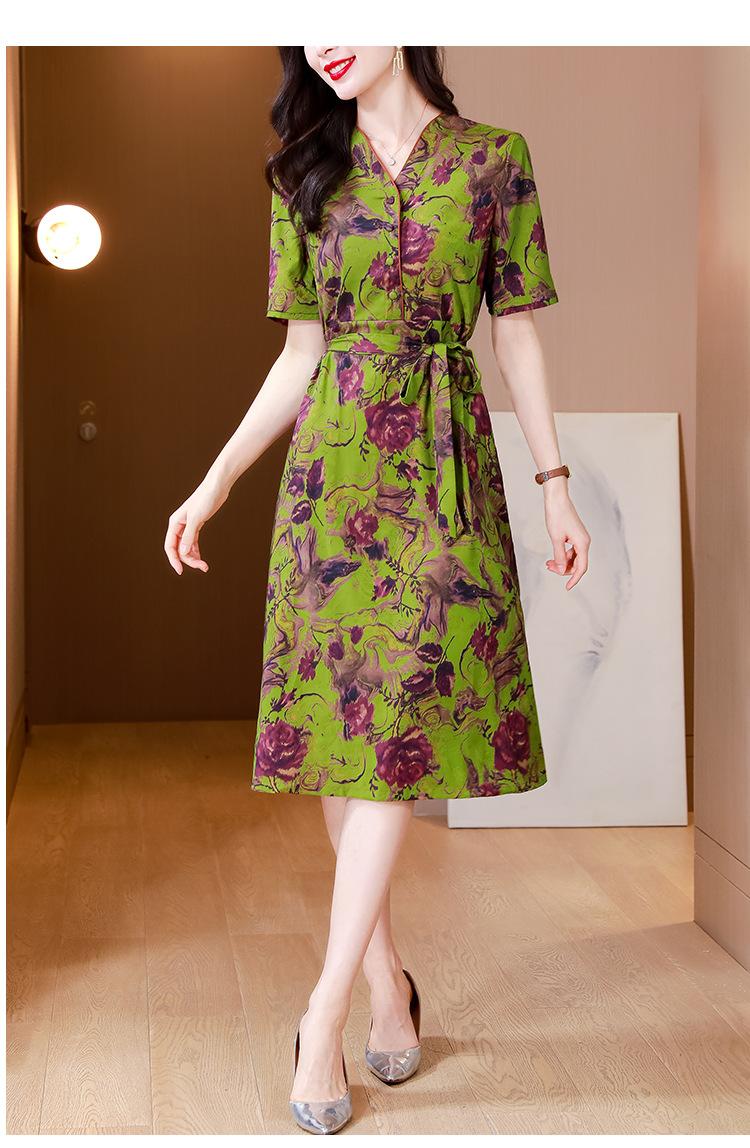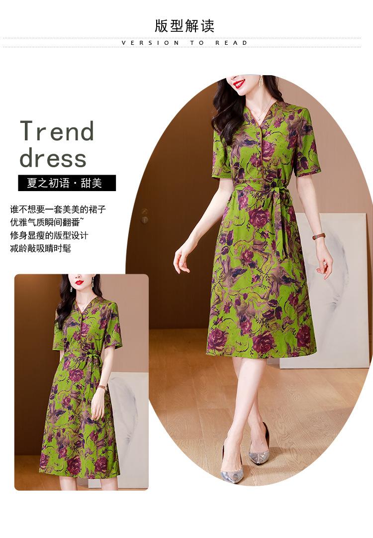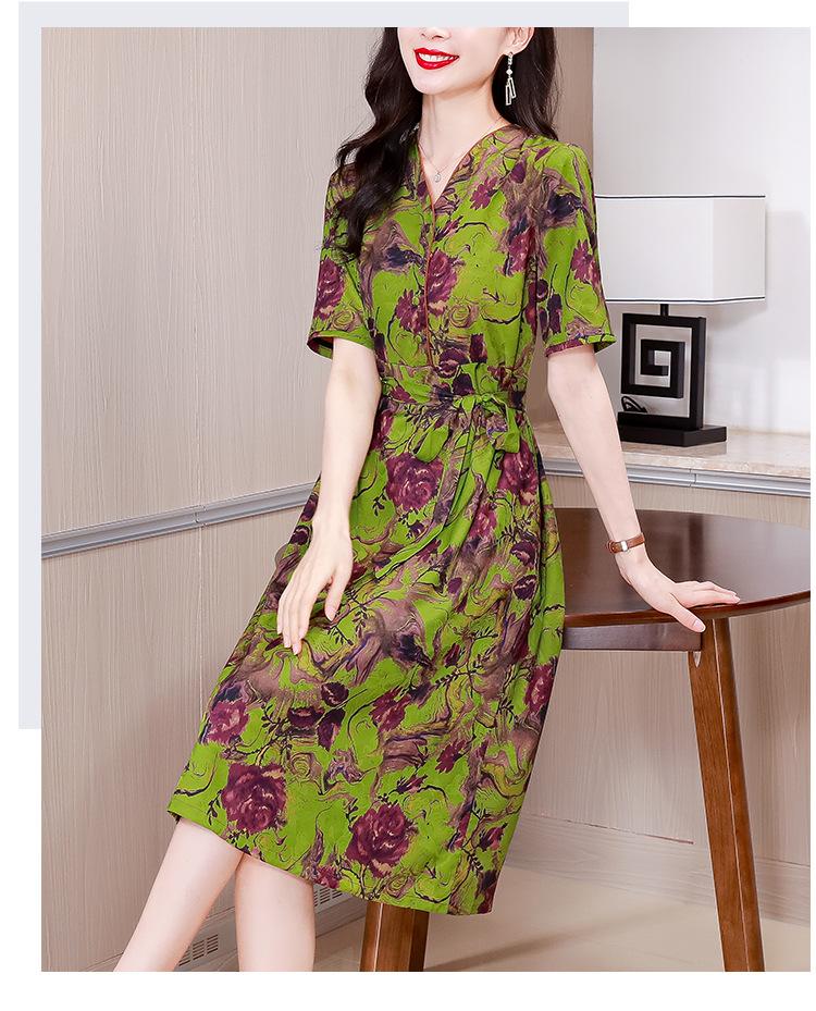 Vestido Estampado para Mujer Verano 2024 Nuevo Estilo Cuello en V Ajustado a la Cintura Aspecto Adelgazante Largo Medio Falda Línea A