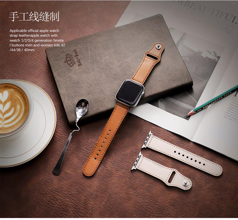Correa para Apple Watch, estilo retro, con botones en la parte superior, correa de piel para iWatch.