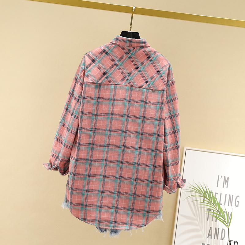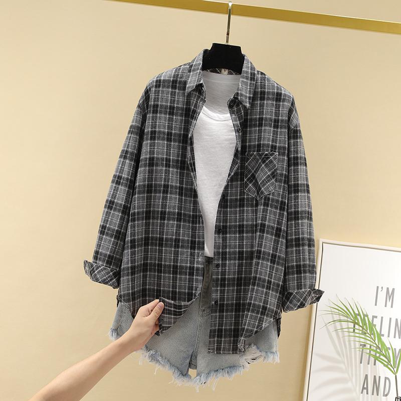 Camisa de Cuadros para Mujer 2025 Nueva Talla Grande mm Estilo Coreano Versátil Tops para Mujer Camisa Holgada Retro Estilo Hong Kong de Manga Larga