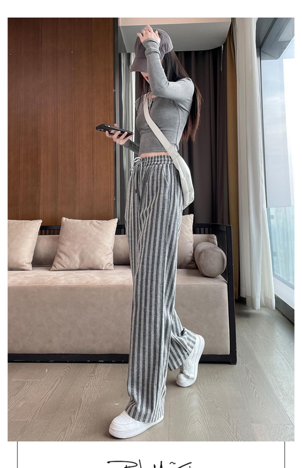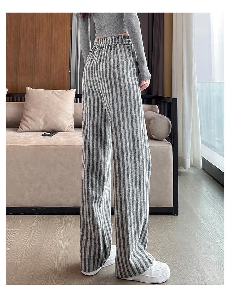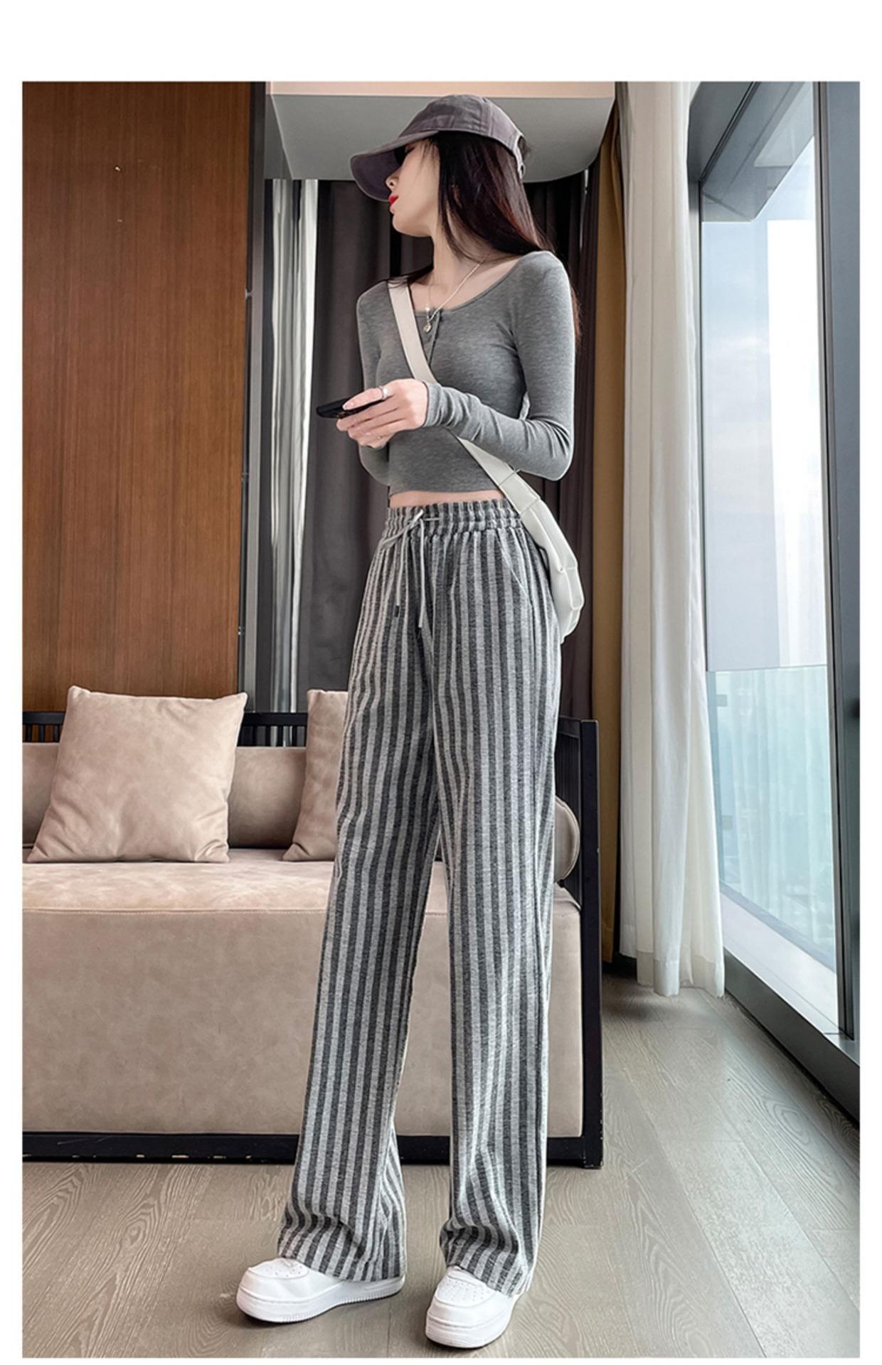 Pantalones casuales slim de cintura alta a rayas de pierna ancha para mujer primavera y otoño con caída a rayas verticales sueltos de pierna recta casuales