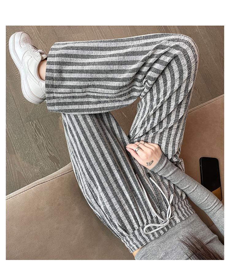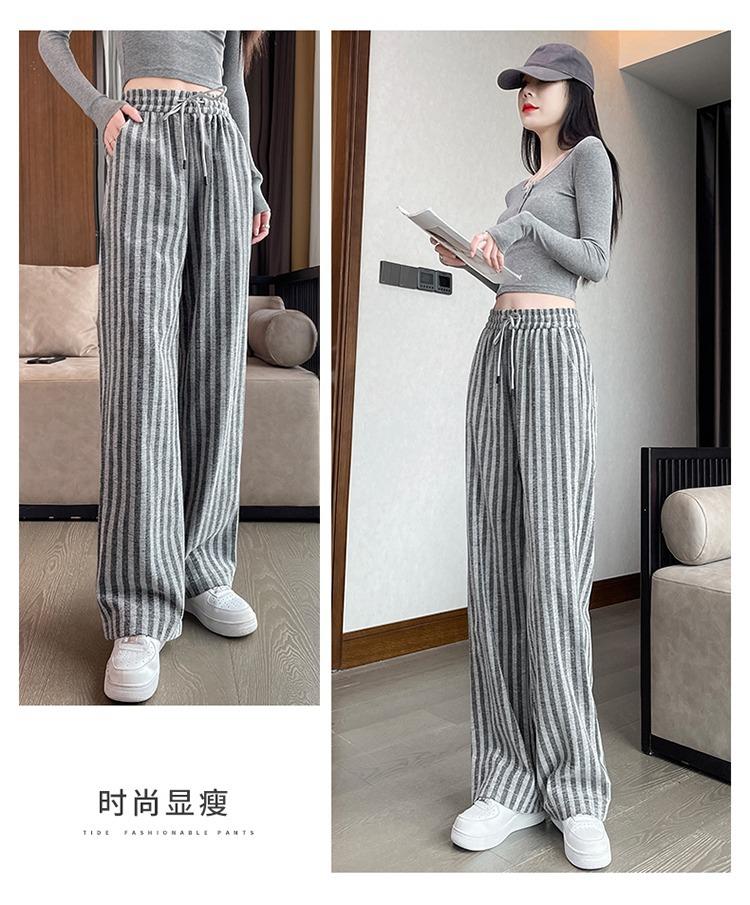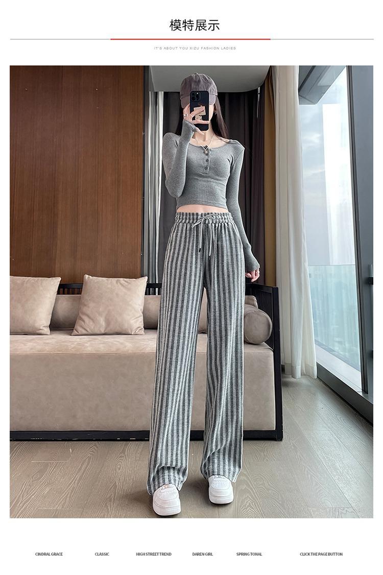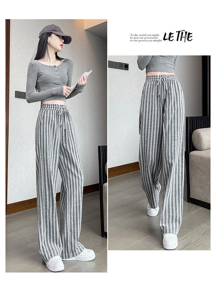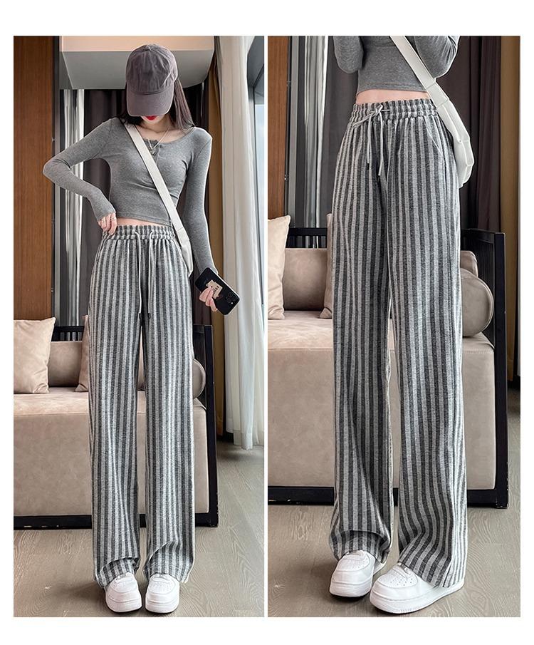 Pantalones casuales slim de cintura alta a rayas de pierna ancha para mujer primavera y otoño con caída a rayas verticales sueltos de pierna recta casuales