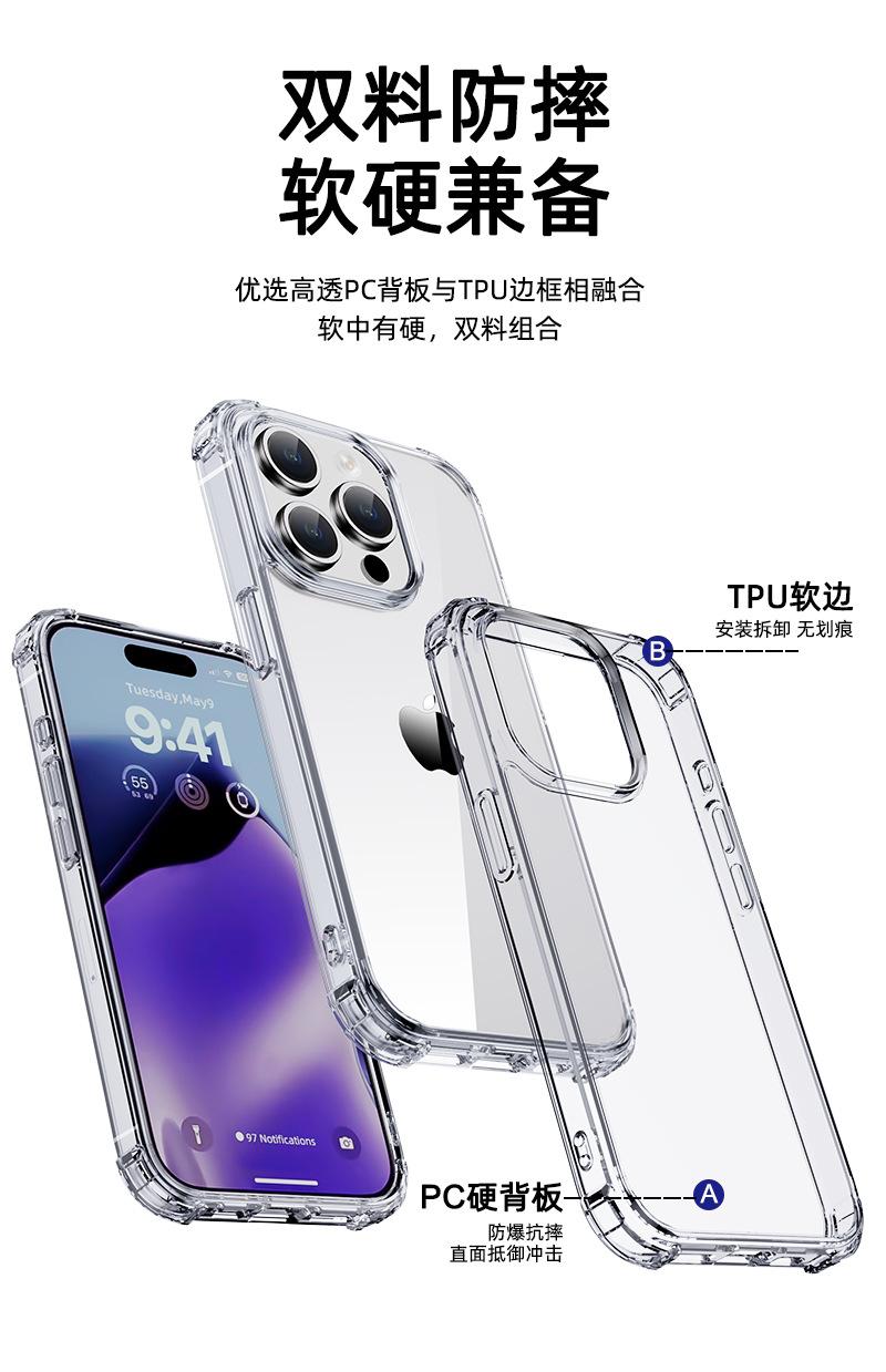 【Tecnología del producto】: Diseño combinado de doble material dos en uno de TPU+PC, de alta definición y transparente