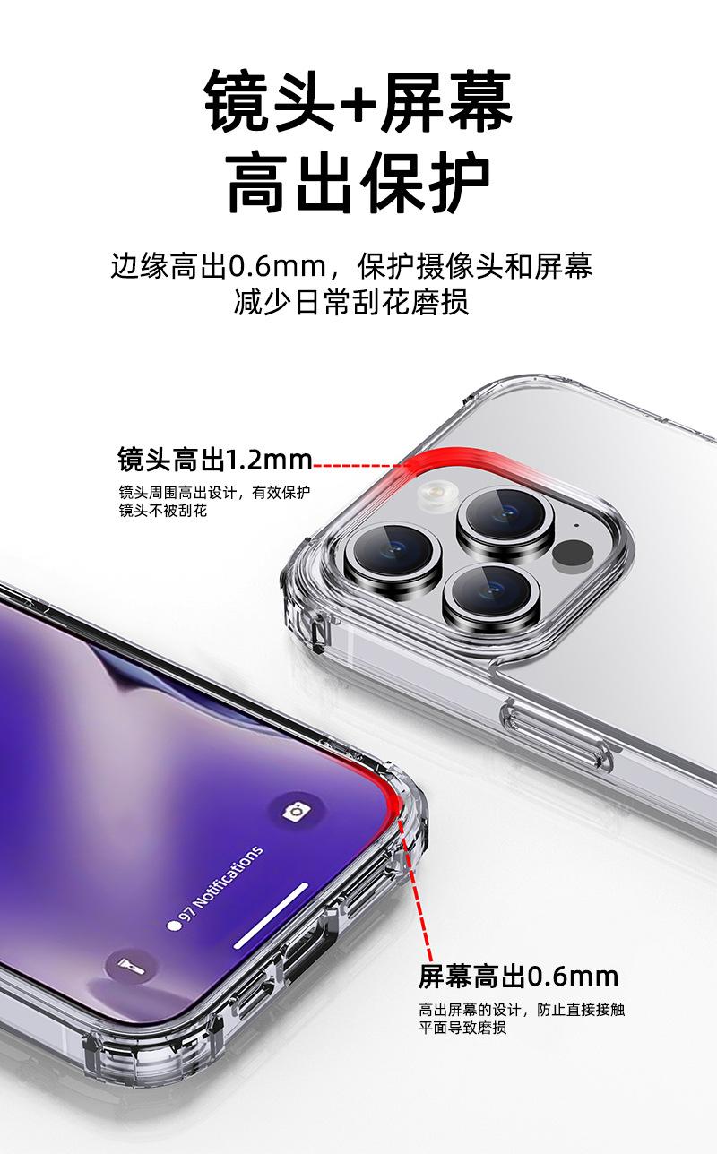【Detalles del producto】: Marco de goma blanda de TPU de 2.2 mm de grosor, panel trasero de PC de alta dureza de 1.5 mm de grosor, alta definición y transparente. Diseño de airbag de absorción de impactos anticaída en las cuatro esquinas, botones sensibles, protección antiarañazos elevada de 0.6-1.2 mm para cámara y pantalla, al mismo tiempo, los lados delantero y trasero están diseñados con protección antiarañazos elevada de 0.-0.7 mm.