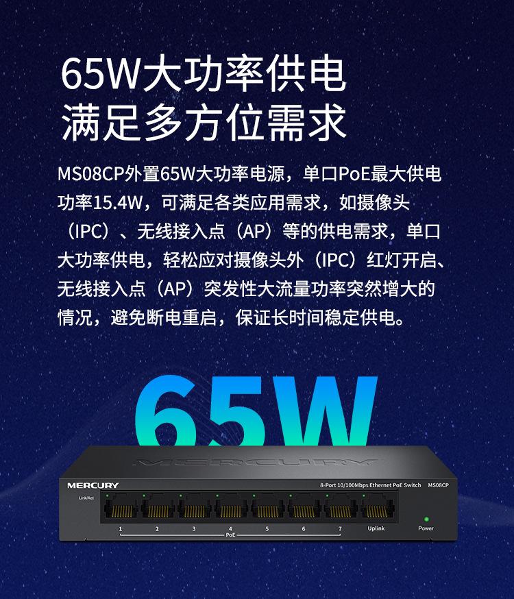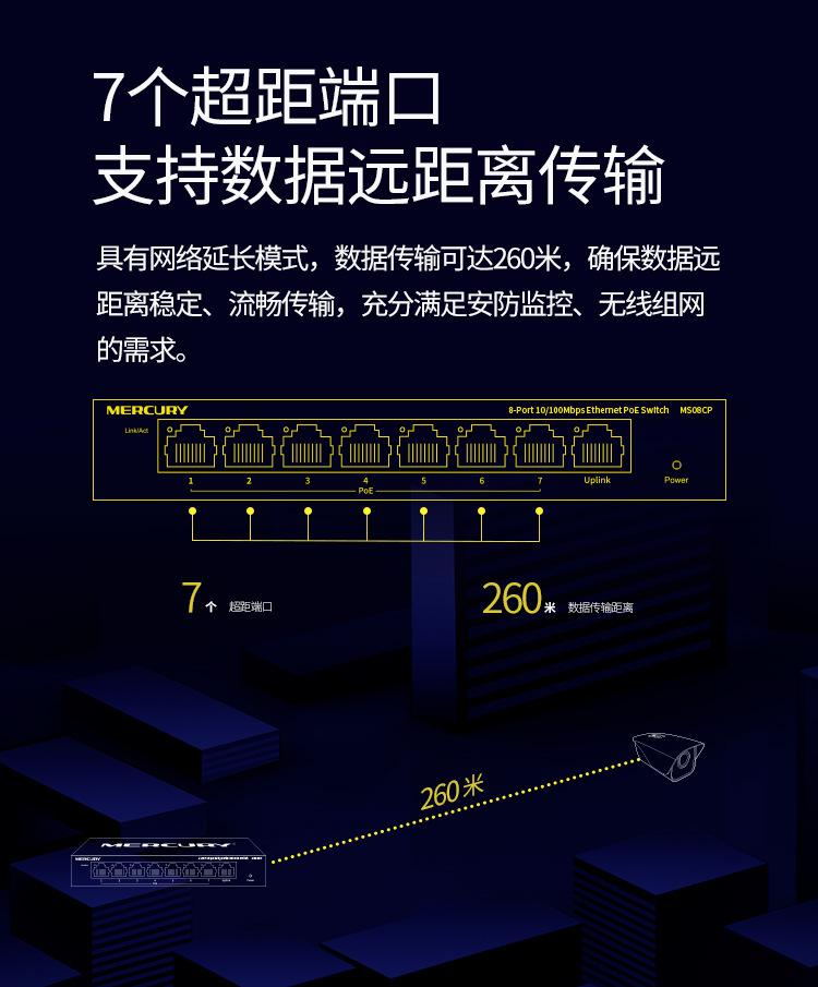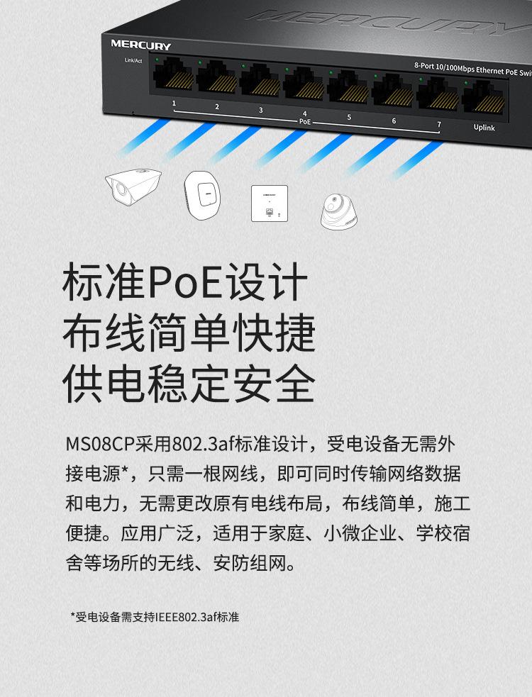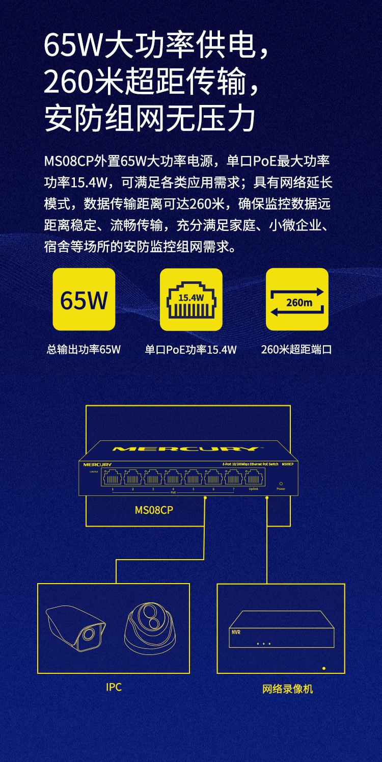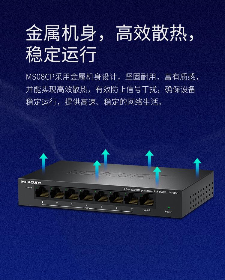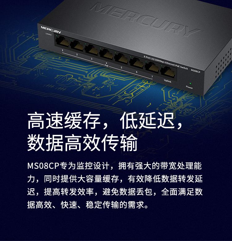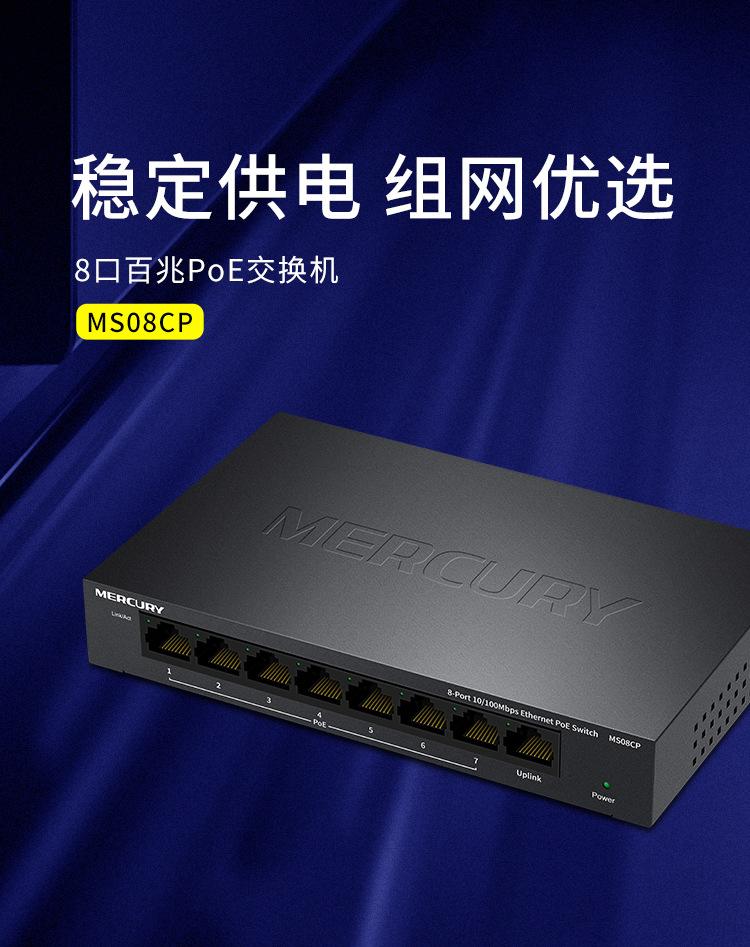 Conmutador PoE Mercury MS08CP de 8 puertos y 100 m para monitoreo de seguridad, cámara de red, fuente de alimentación PoE