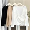 2023 otoño nueva moda coreana para mujer cuello alto hueco fino manga larga camisa de encaje superior