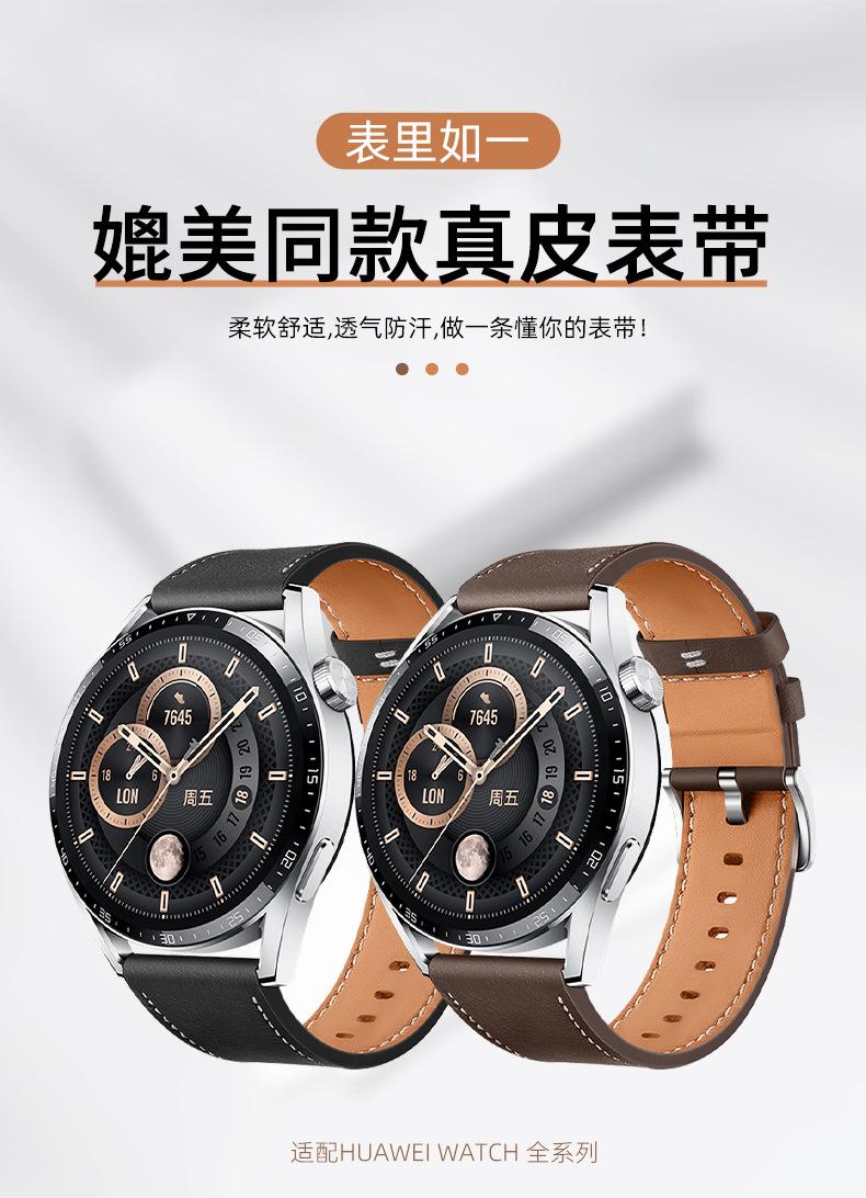 [Correa de cuero original Huawei GT3 de piel de becerro oficial misma correa de cuero adecuada para reloj Xiaomi Samsung 2 pro]
