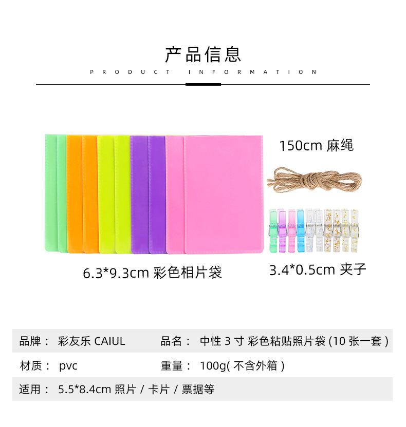 Bolsa de fotos a color con parte trasera adhesiva para minimarco de fotos de 3 pulgadas Marco de fotos creativo a color