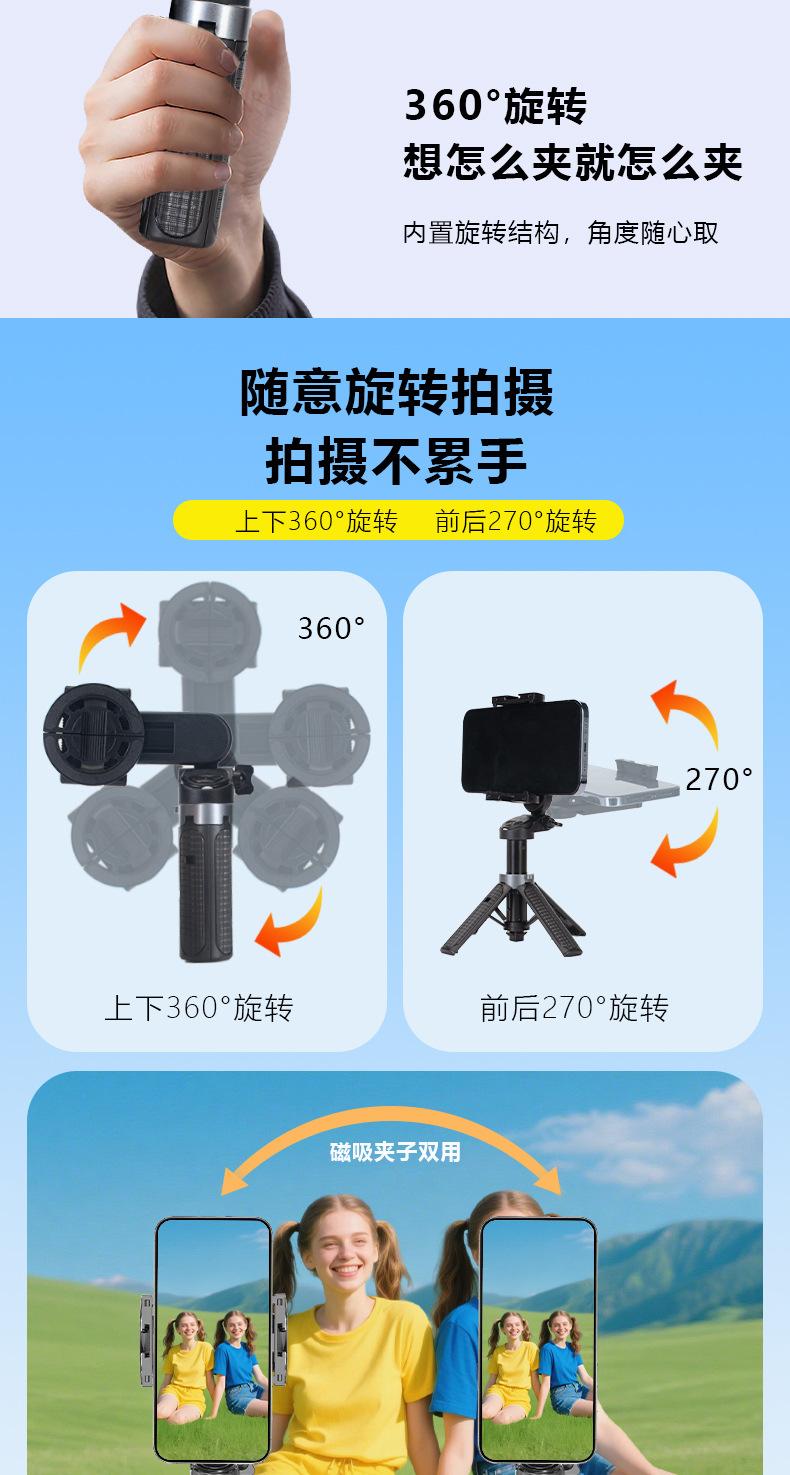 2025 nuevo palo selfie trípode universal artefacto para grabación de vlogs rotación de 360 grados teléfono móvil en vivo soporte bluetooth