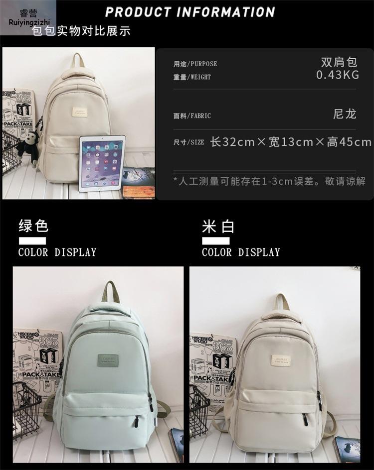 Mochila de Color Sólido para Mujer Estilo Coreano Harajuku Estilo Campus Mochila para Estudiante de Secundaria y Preparatoria Bolso Escolar para Mujer Mochila Simple de Gran Capacidad