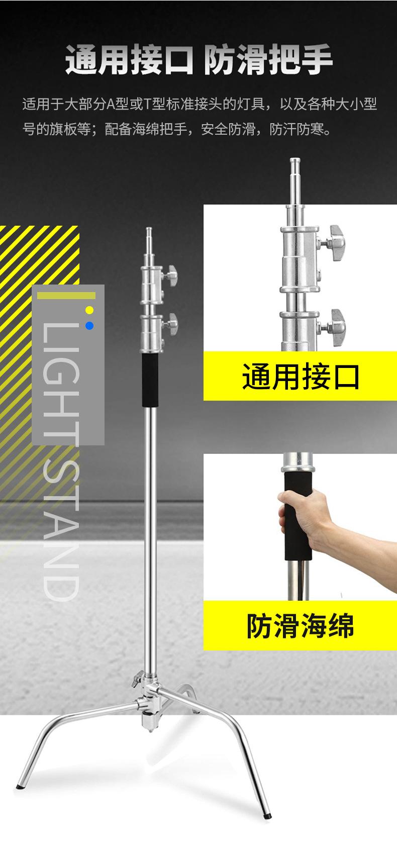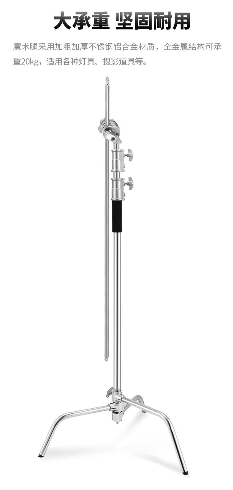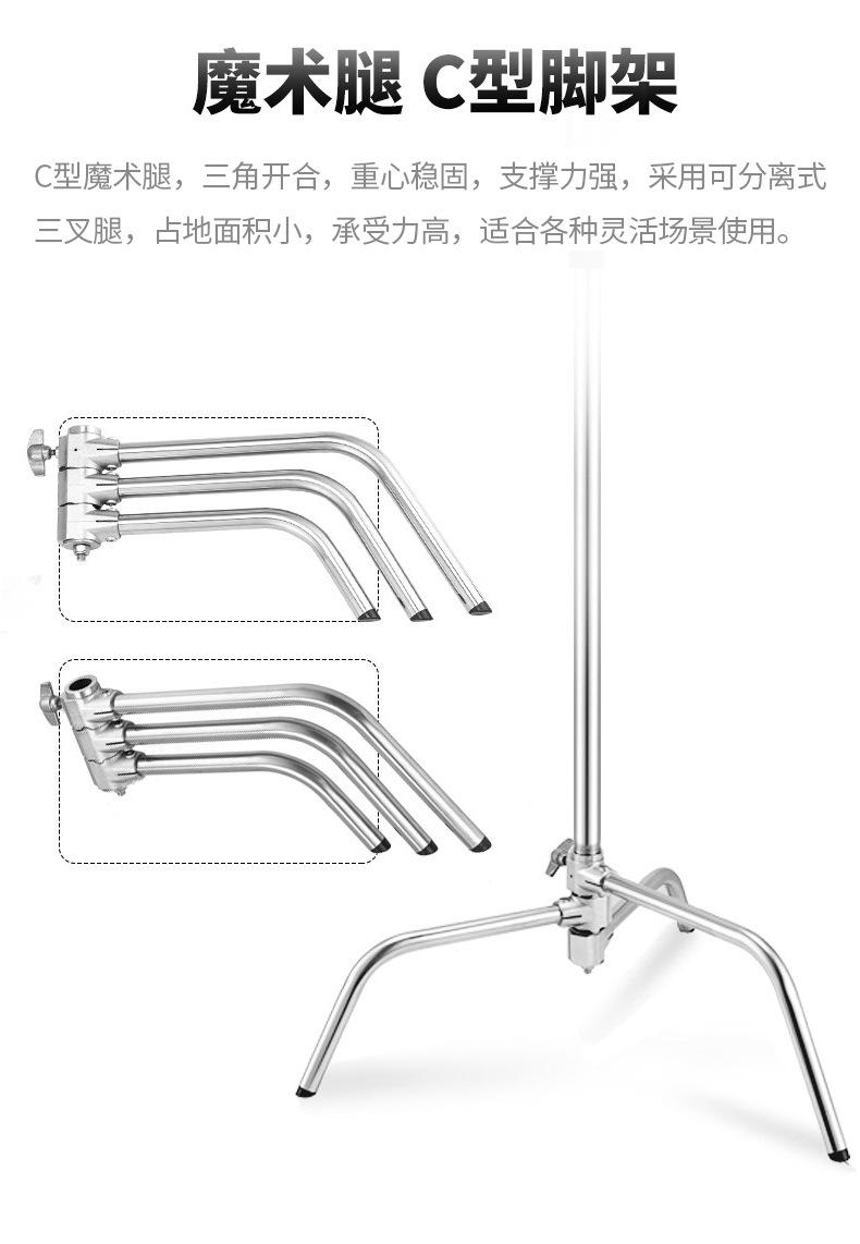 Soporte de lámpara de acero inoxidable antideslizante con patas mágicas para fotografía, estable y en vivo, soporte en forma de C, soporte de trípode de lámpara de dos usos en cruz.