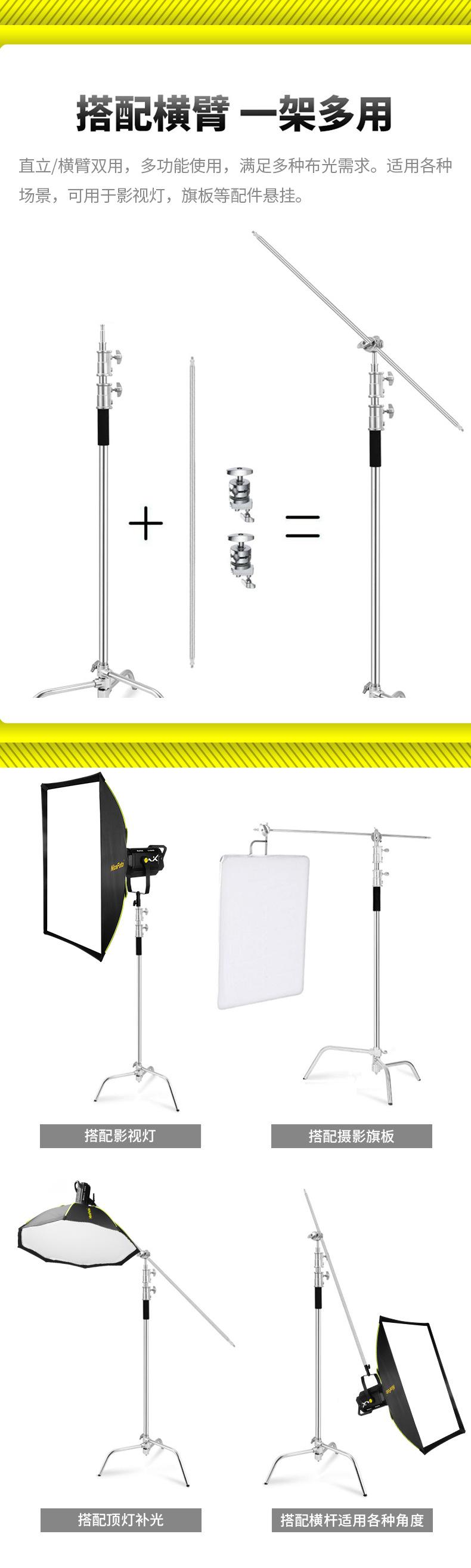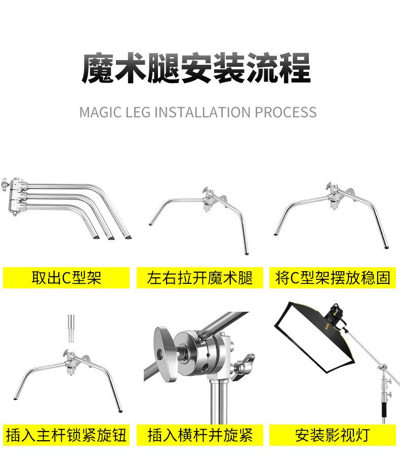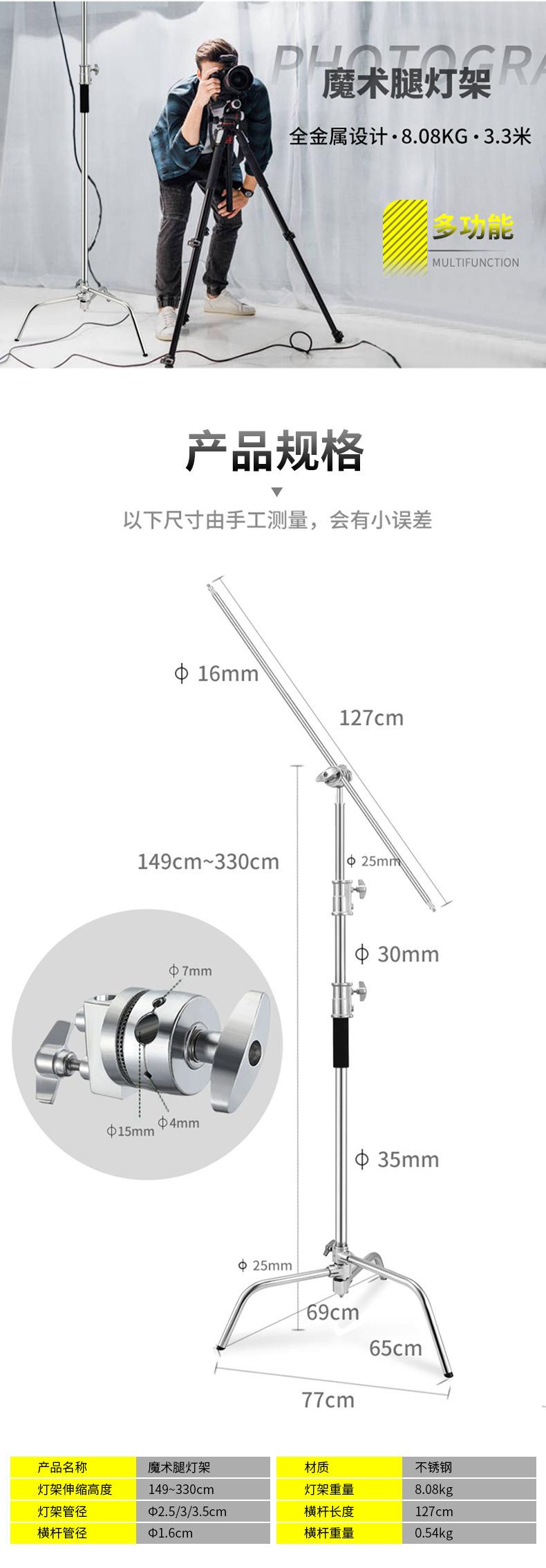 Soporte de lámpara de acero inoxidable antideslizante con patas mágicas para fotografía, estable y en vivo, soporte en forma de C, soporte de trípode de lámpara de dos usos en cruz.