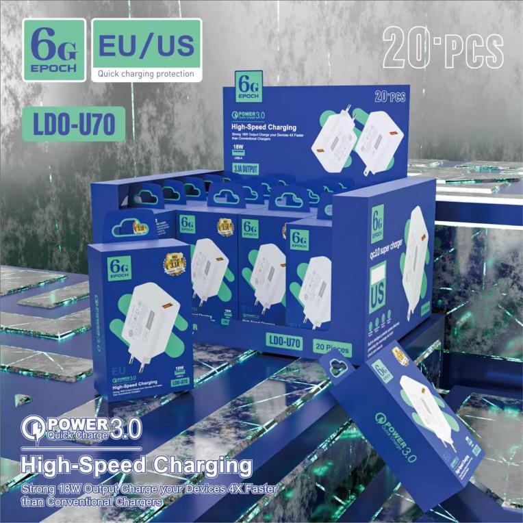 Cargador USB de Carga Rápida Qc3.0 para Teléfonos Móviles Adecuado para Huawei, Vivo, Teléfonos Móviles Apple, Cargador Estándar Europeo y Americano de 3A