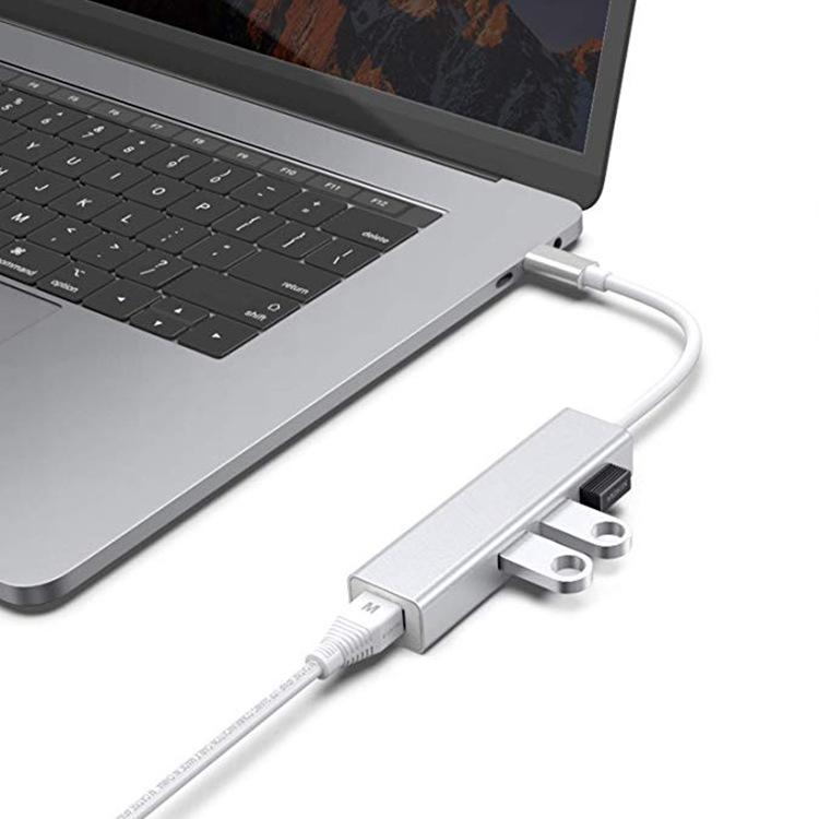 (Ampliamente utilizado en la computadora portátil Apple Macbook Air de 12 pulgadas con puerto de salida USB3.1 para conectar la fuente de señal de la interfaz USB3.0 de 3 puertos para disco duro móvil/teléfono móvil/unidad USB, con función OTG, la salida es velocidad USB 3.0 de alta velocidad + conexión de tarjeta de red Gigabit, compatible con cable de red de 100M. Las dos funciones se pueden usar al mismo tiempo.