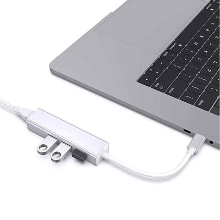 Nombre del producto: USB 3.1 Tipo-C a HUB de 3 puertos 3.0 + Cable LAN Gigabit/Laptop Apple Macbook Air de 12 pulgadas USB3.1 a HUB de 3 puertos USB 3.0 + LAN Gigabit, función USB OTG, interfaz 3.1 se puede enchufar en ambas direcciones