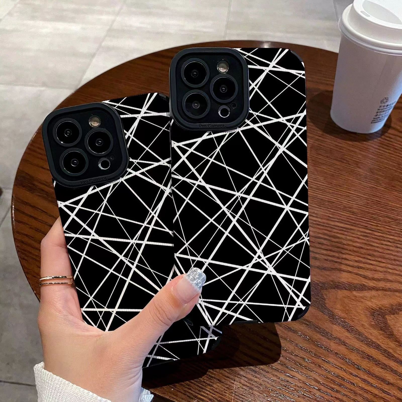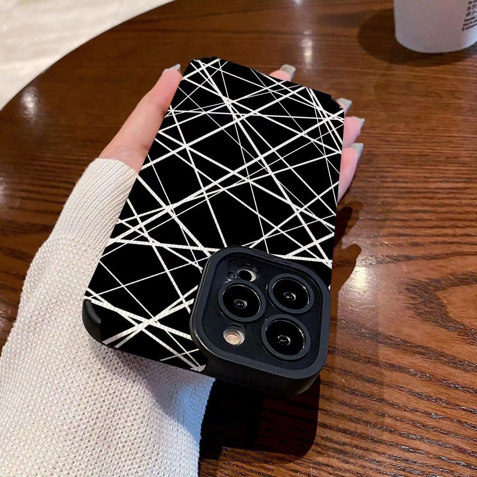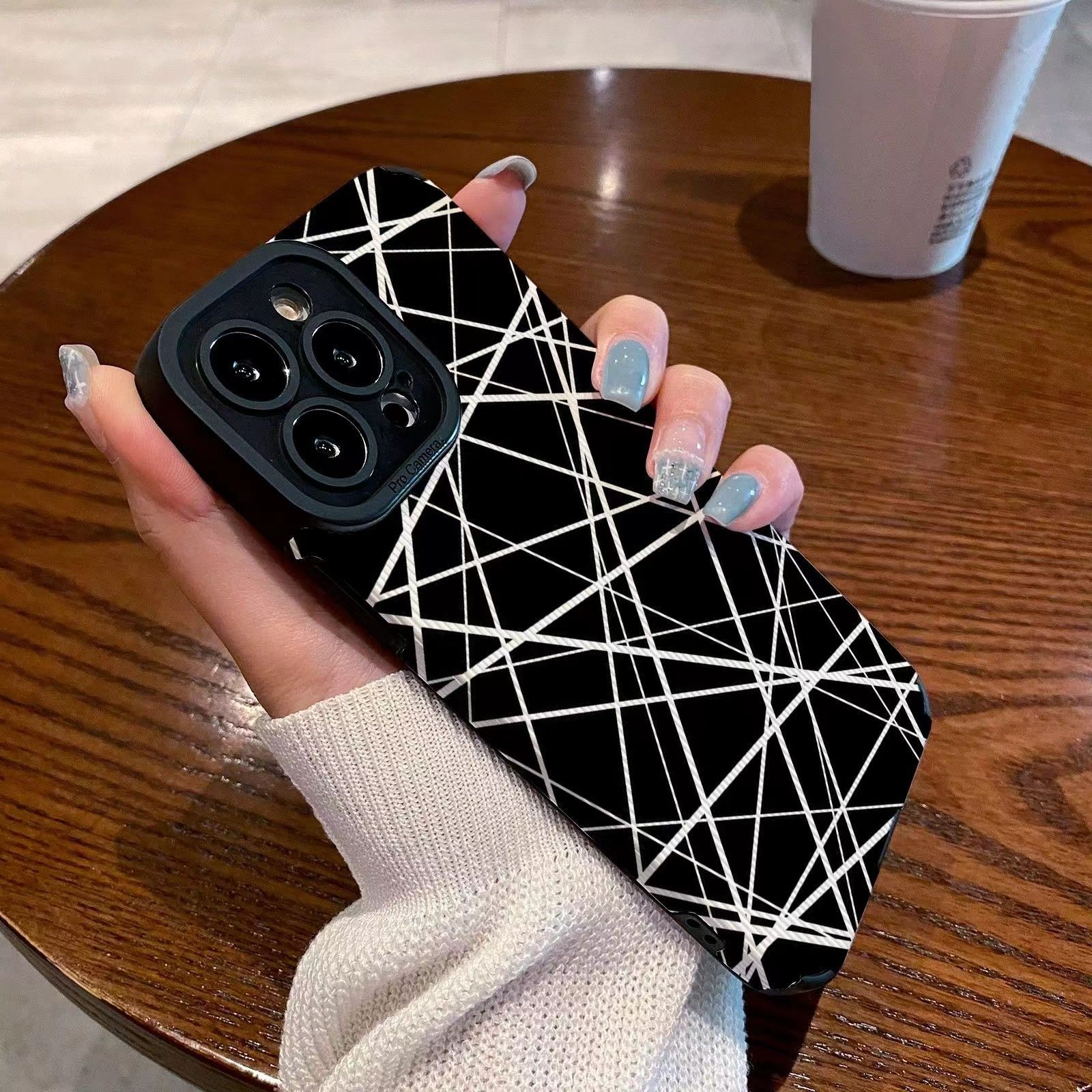 Adecuado para iPhone 13/14 Pro Max Apple 12/11 Funda para teléfono móvil simple 15 Todo incluido XS Suave 16 Líneas cruzadas