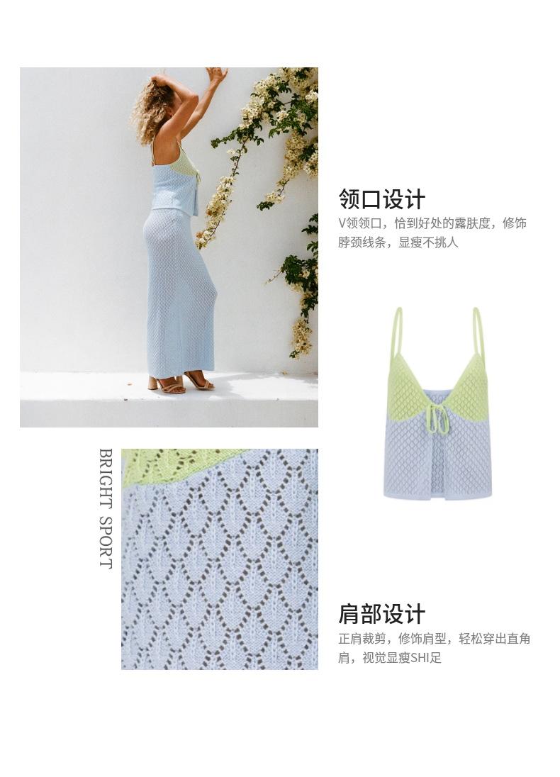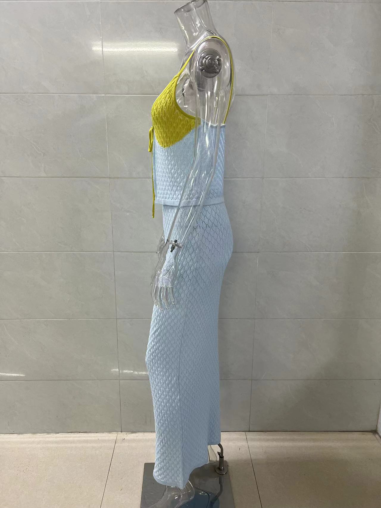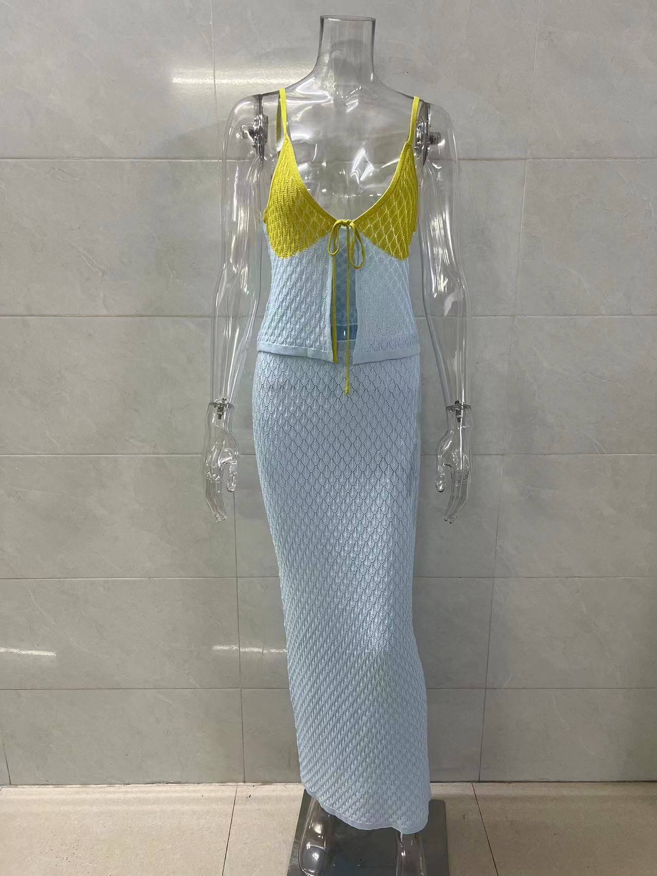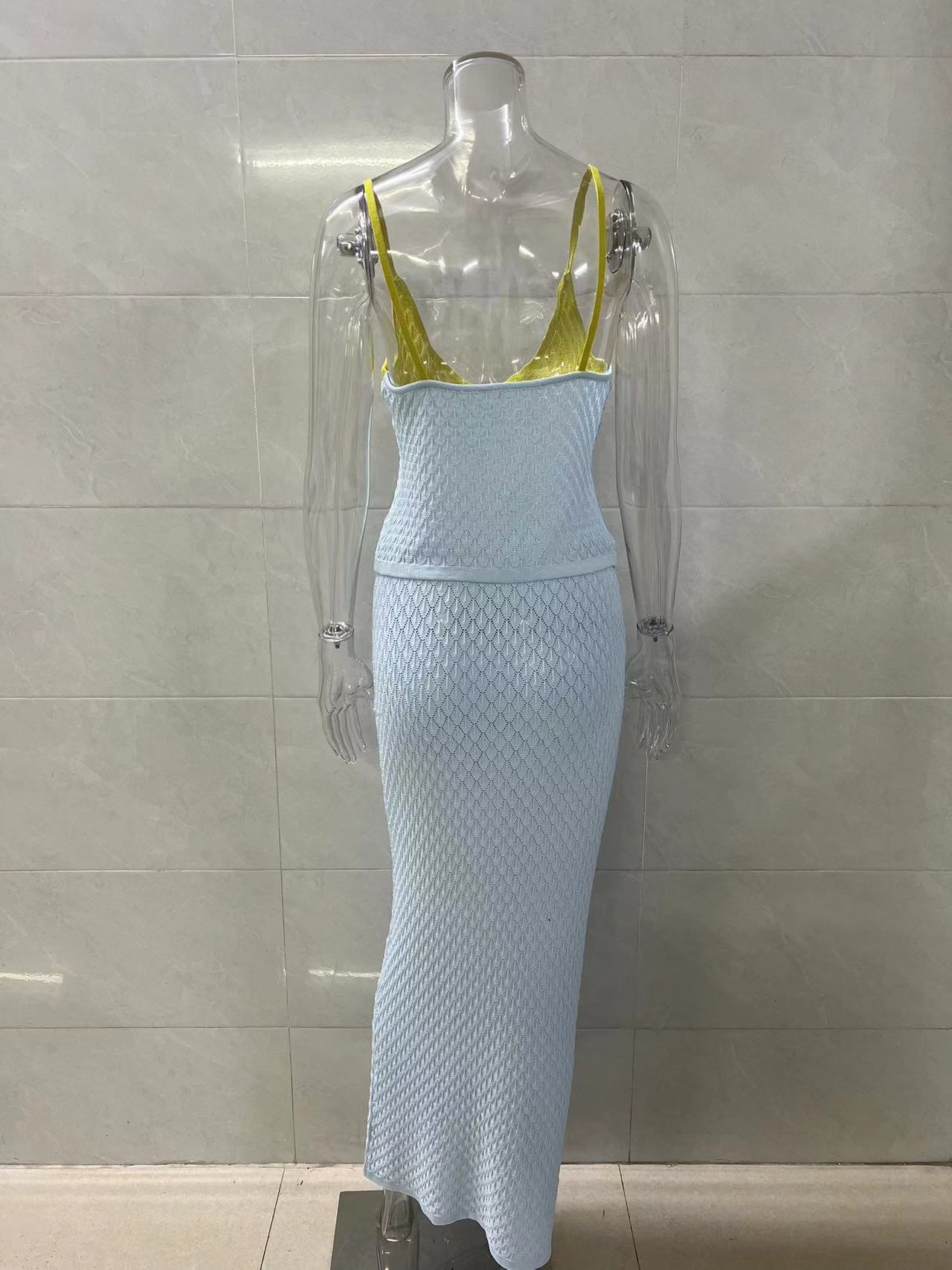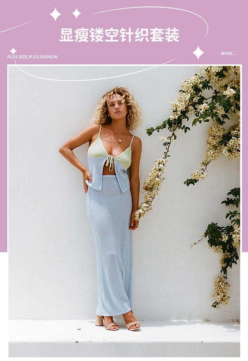 25 Nuevo Traje de Chica Caliente Transfronterizo Europeo y Americano Sexy Top de Tirantes Hueco Falda de Cadera Ropa de Verano Conjunto de Dos Piezas para Mujer