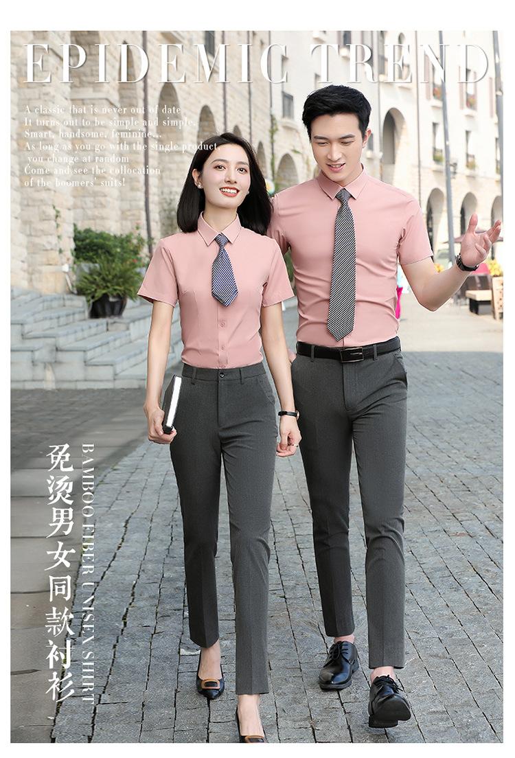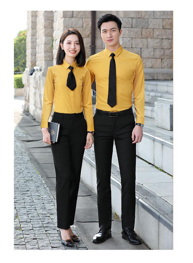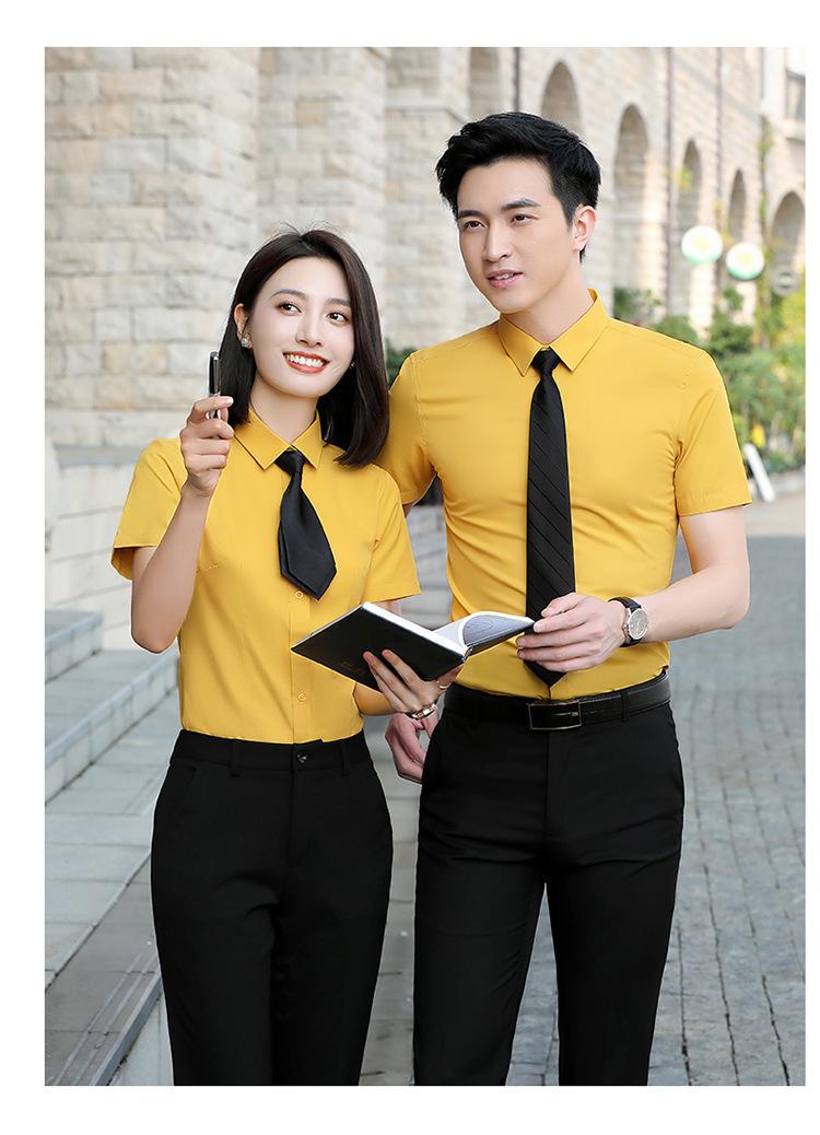 Camisa amarilla lisa de algodón de manga corta larga, vestido de negocios para hombre y mujer, mismo estilo, camisa de negocios, ropa de trabajo, LOGO bordado