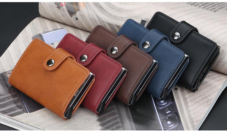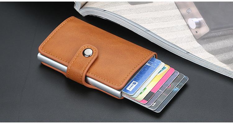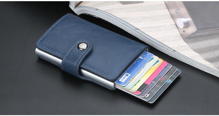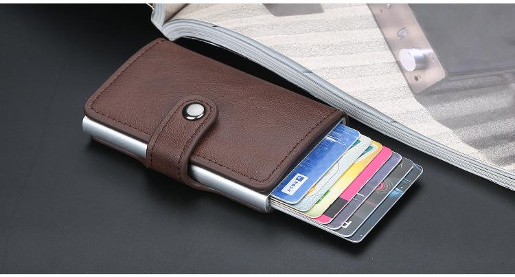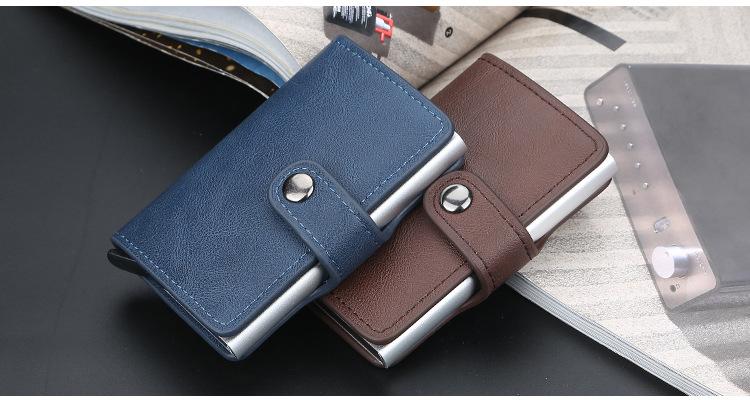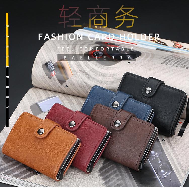 Baellerry nuevo tarjetero para hombre rfid automático elástico tarjetero para tarjetas bancarias carcasa de metal aluminio tarjetero antimagnético