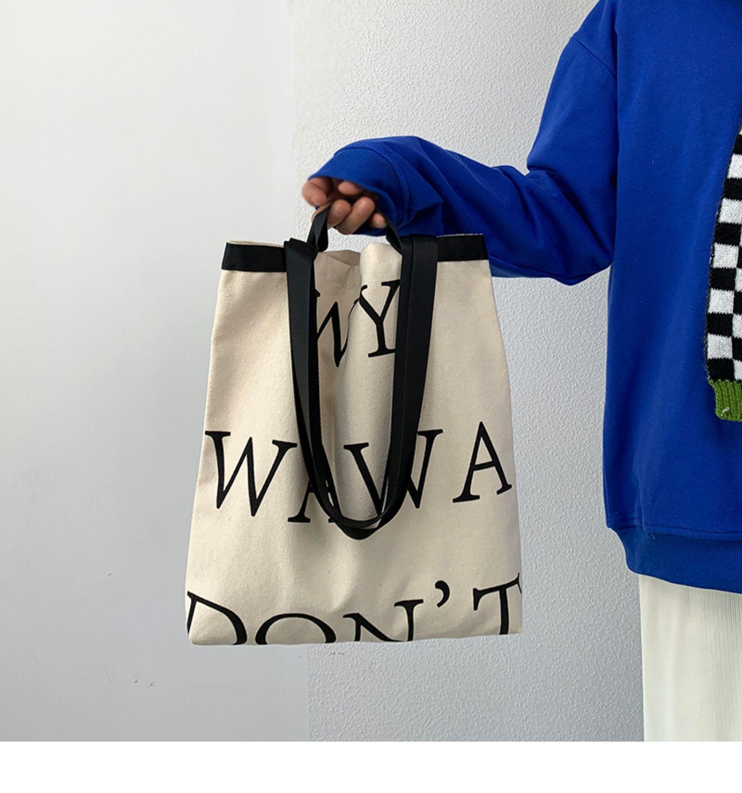 Compra Bolsa de Lona para Mujer al Hombro de Gran Capacidad Clase para Estudiantes Estilo Coreano Simple Letra Moda Portátil Viaje Bolsa de Lona al por mayor en Joom.pro