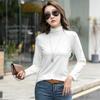 Camiseta básica de modal con cuello alto medio de manga larga para mujer, otoño e invierno, camiseta de interior versátil con forro polar, nuevo estilo 2025