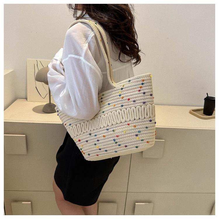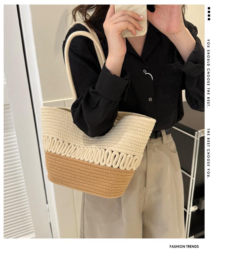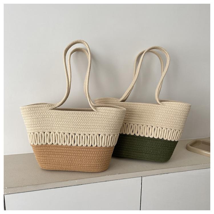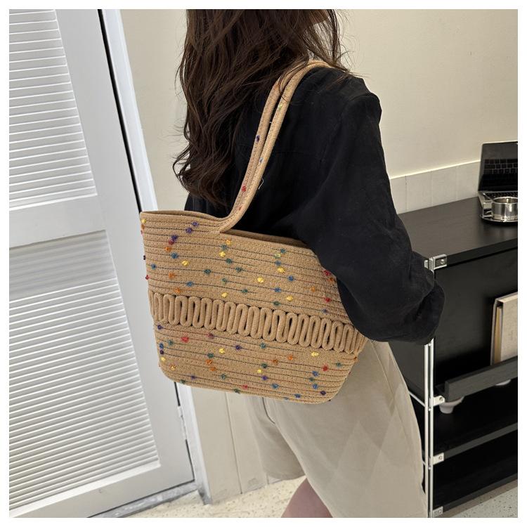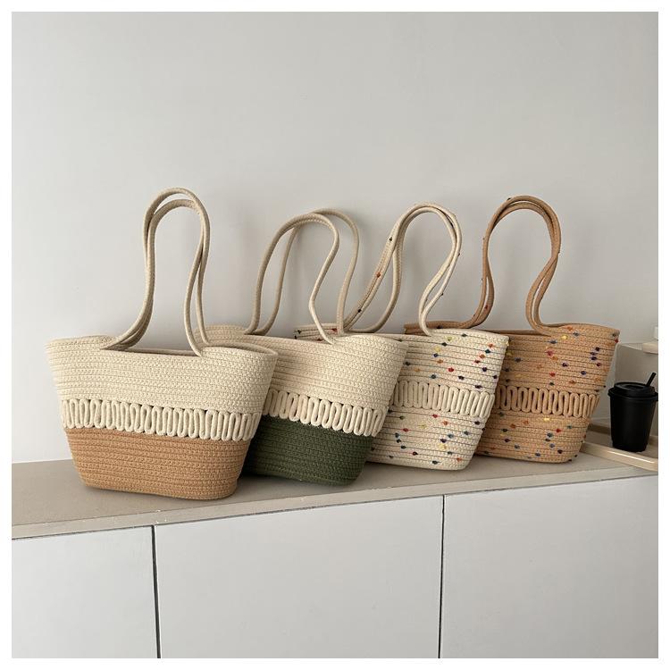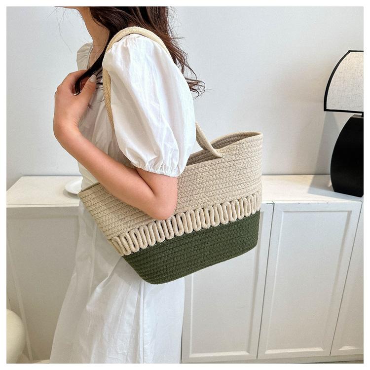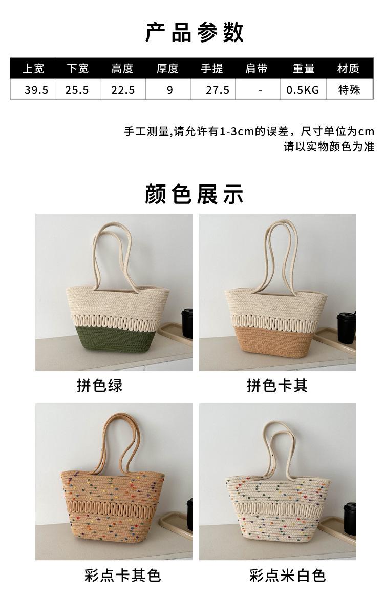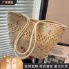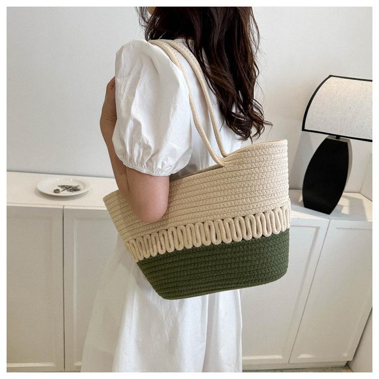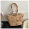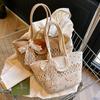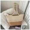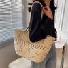 Bolso de un solo hombro tejido de algodón hueco, nuevo bolso de paja francés de gran capacidad para verano, bolso de playa para vacaciones en la playa para mujer