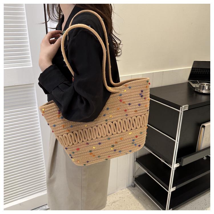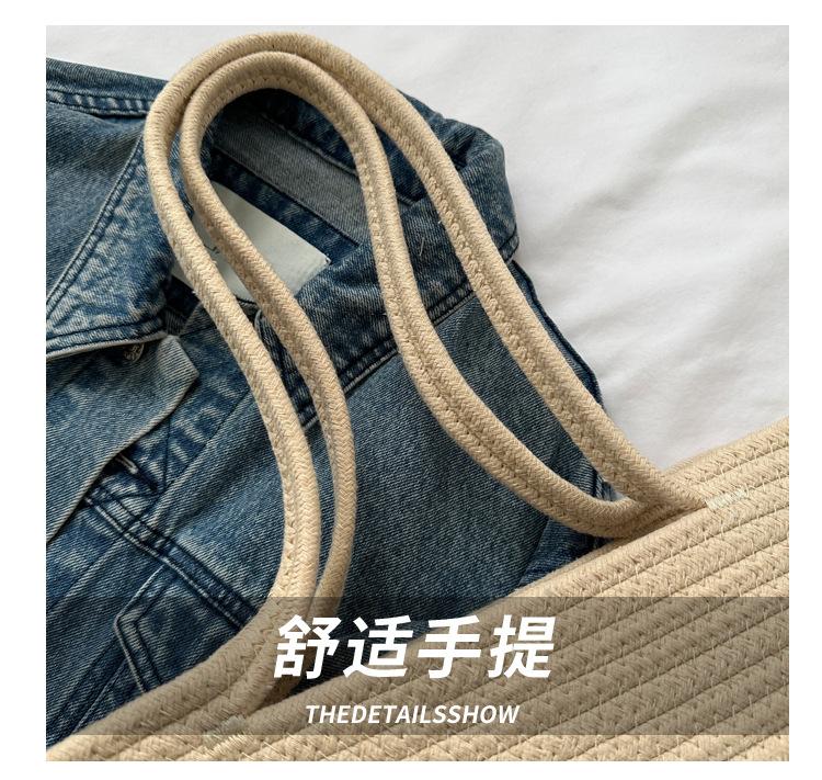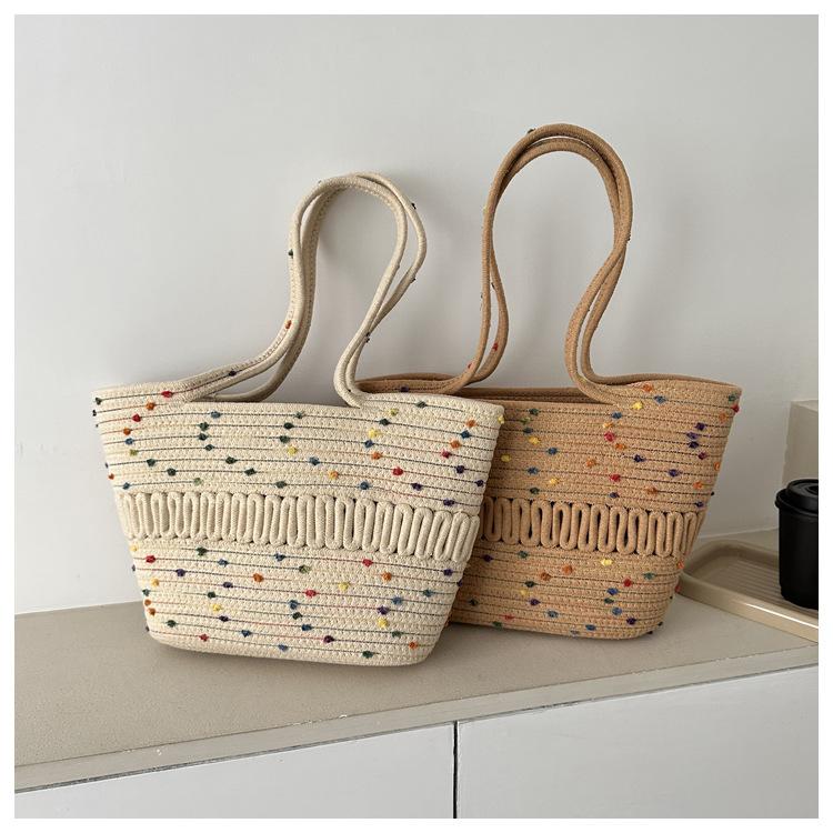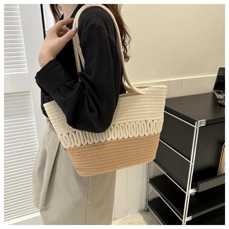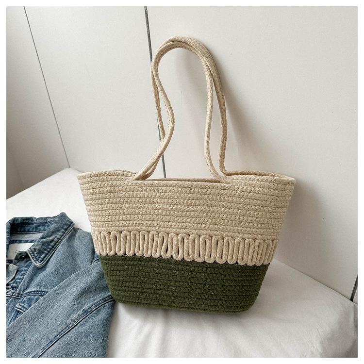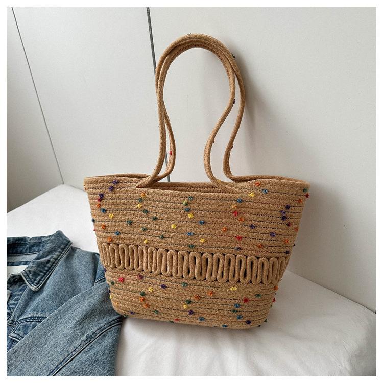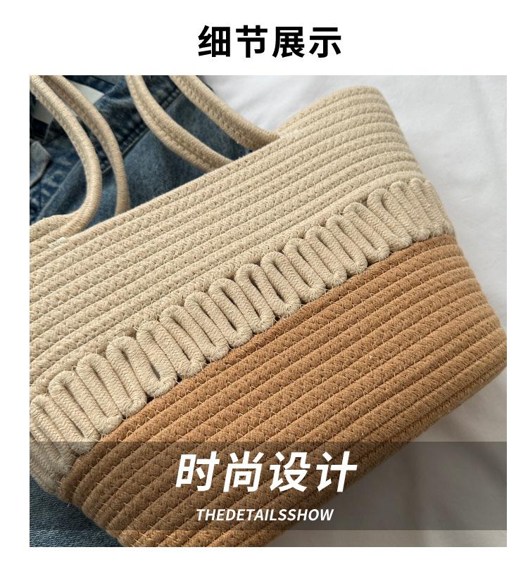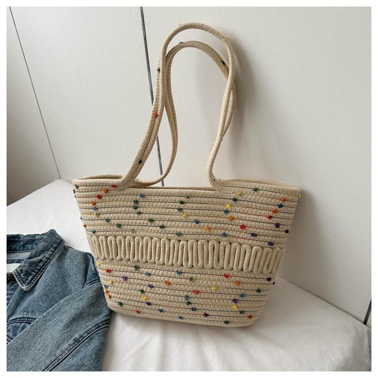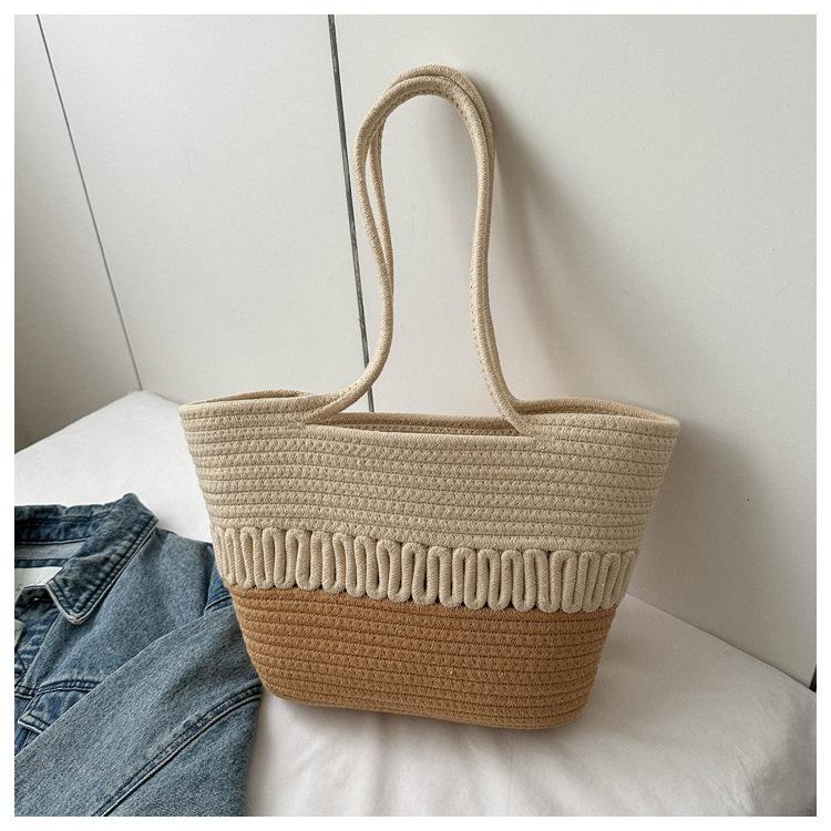 Bolso de un solo hombro tejido de algodón hueco, nuevo bolso de paja francés de gran capacidad para verano, bolso de playa para vacaciones en la playa para mujer