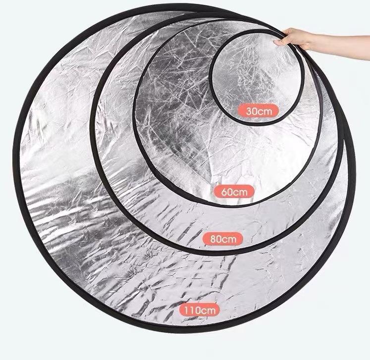 Reflector plateado: Debido a que el reflector plateado es más brillante y liso que un espejo, produce una luz más intensa. El reflector plateado es un reflector de uso común. Su efecto se refleja fácilmente en los ojos del sujeto, creando una luz amplia y brillante. Úselo cuando esté nublado y la luz provenga principalmente de la parte superior de la cabeza del sujeto. Colóquelo directamente debajo del rostro del sujeto, de modo que quede justo fuera del campo de visión de la cámara, y refleje la luz superior sobre su rostro. En condiciones de luz nublada, los reflectores blancos no tienen un efecto tan intenso.
