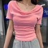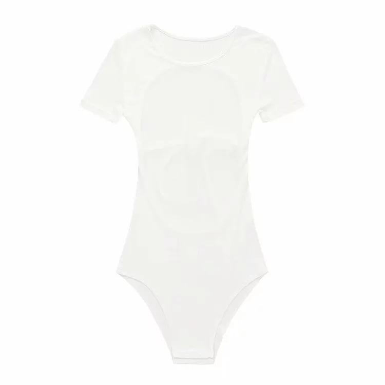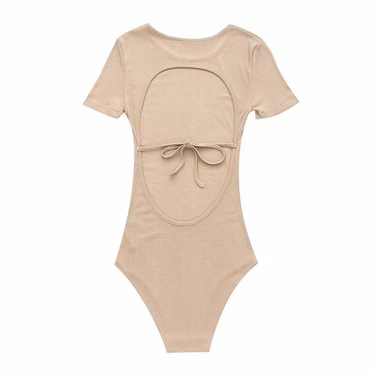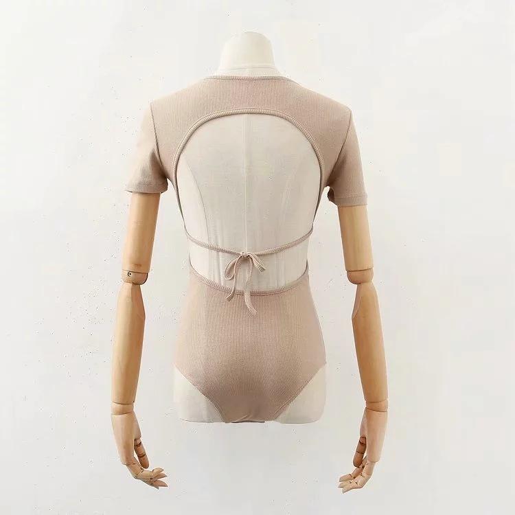 Mono sexy con cordones y espalda descubierta de Amazon Europa y América para mujer, camiseta de manga corta ajustada para primavera y verano.