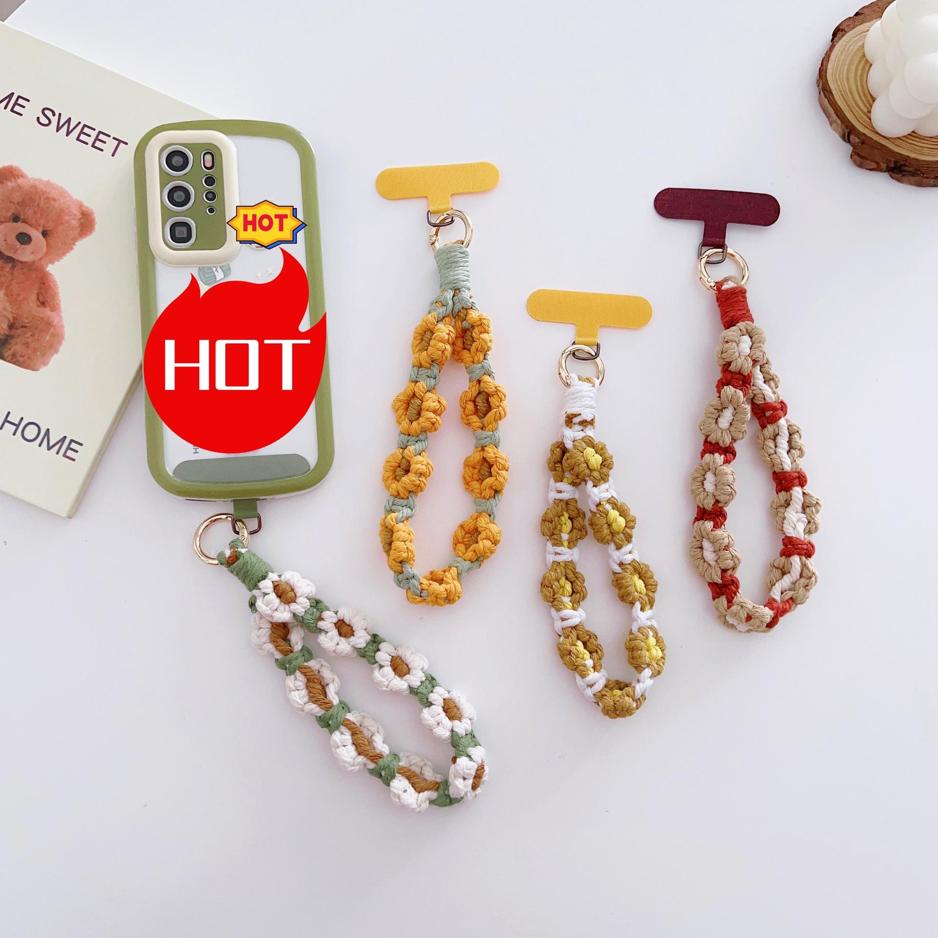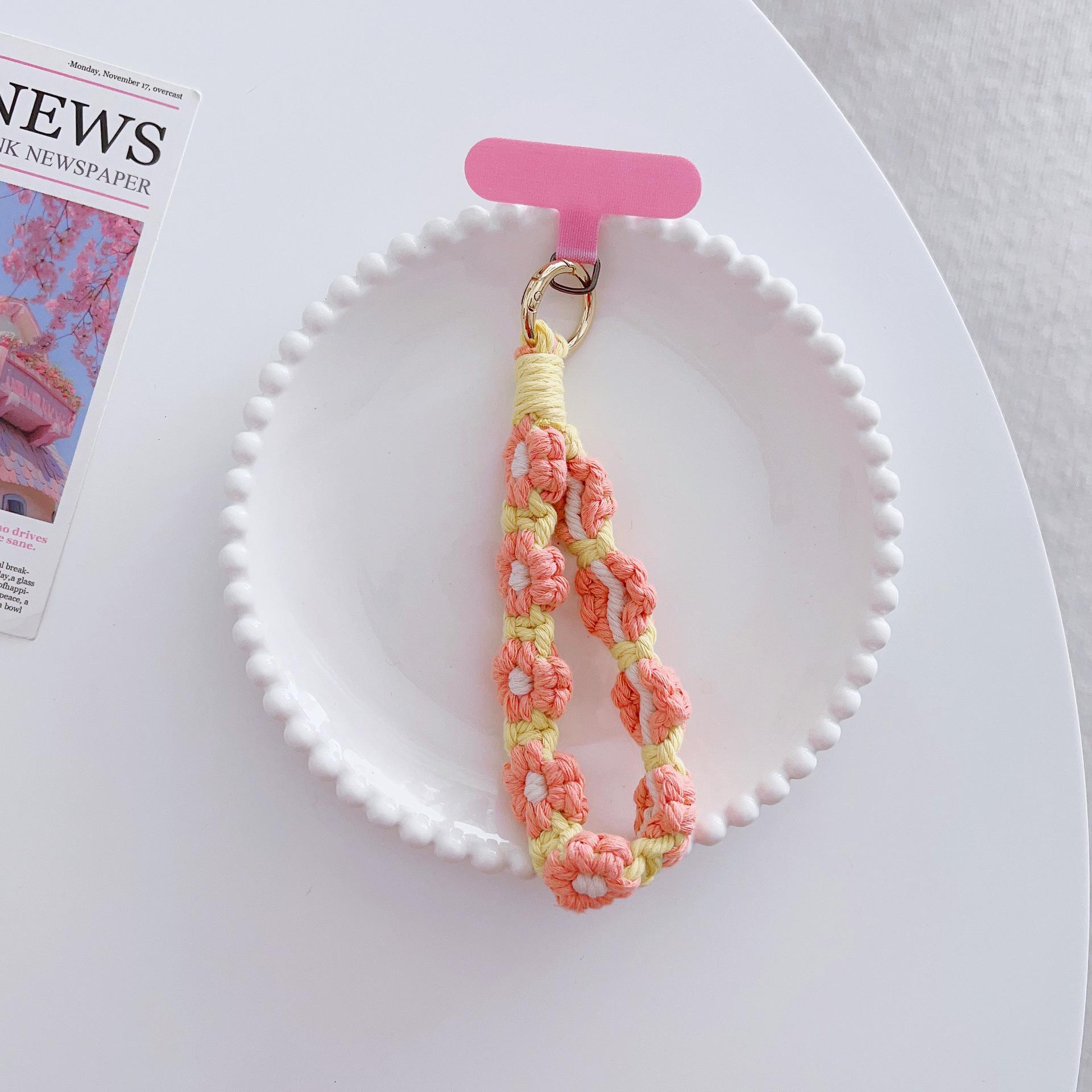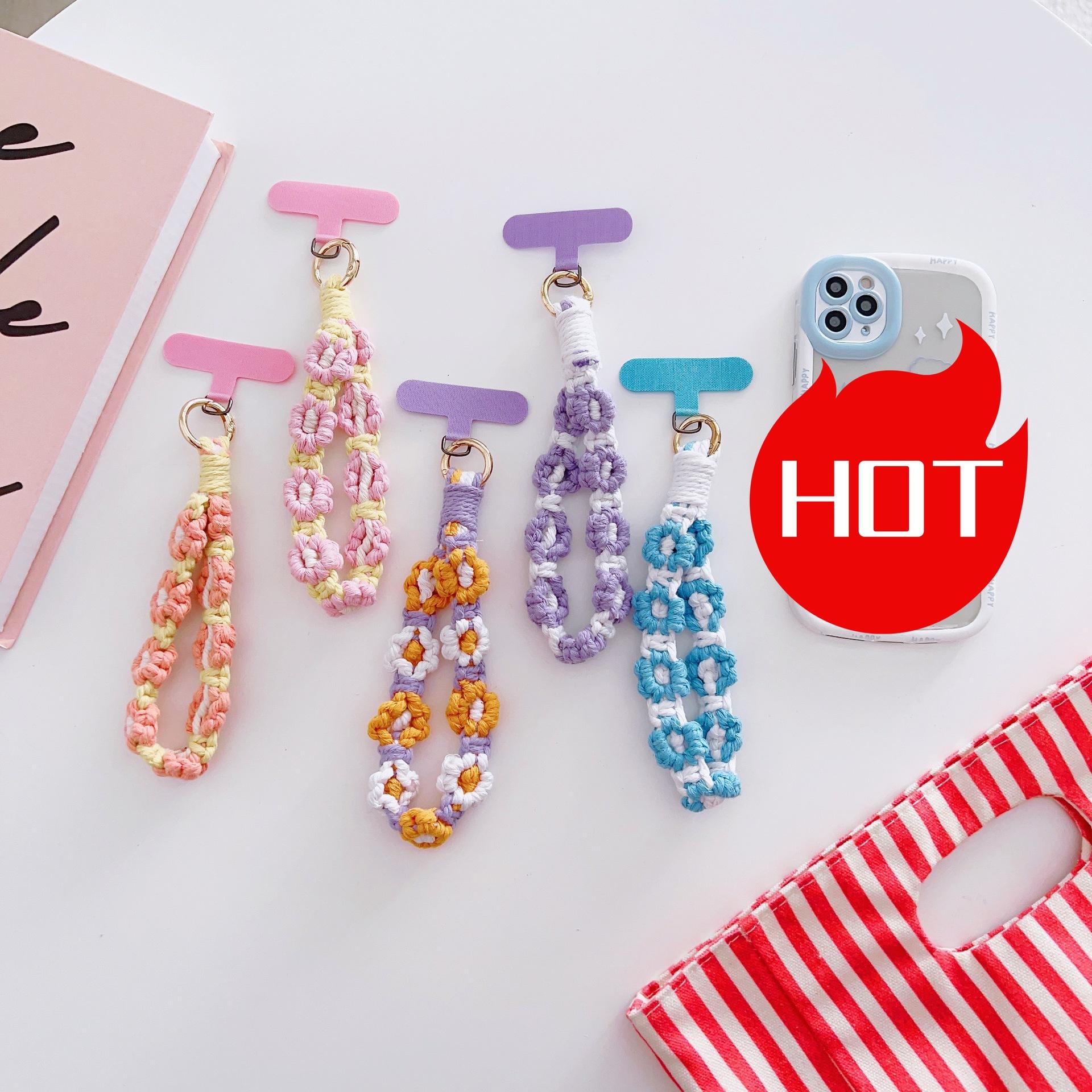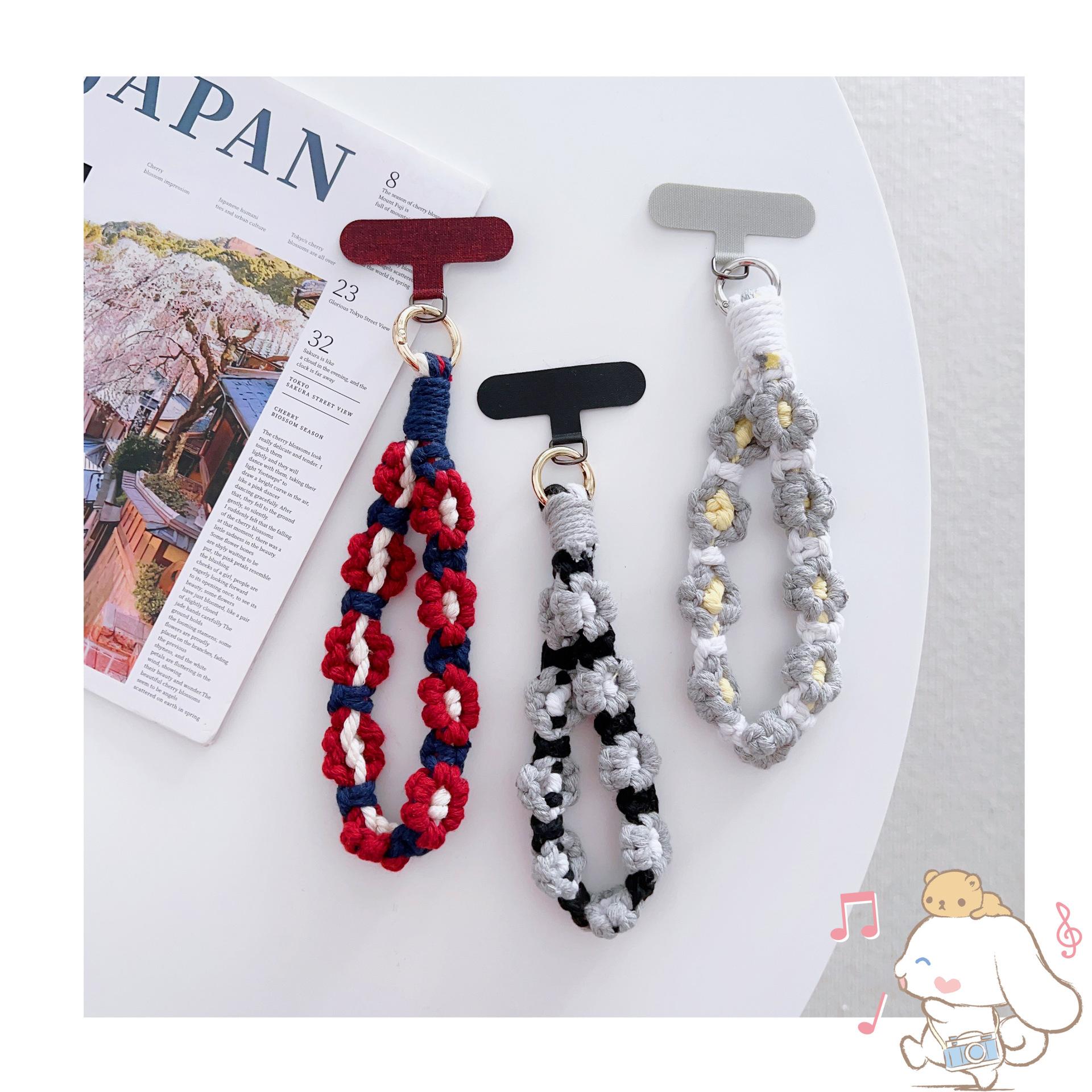 [Nombre del producto]: Adornos de cordón para teléfono móvil flores tejidas colgante portátil anti-pérdida accesorios de moda muñeca corto cadena para funda de teléfono móvil