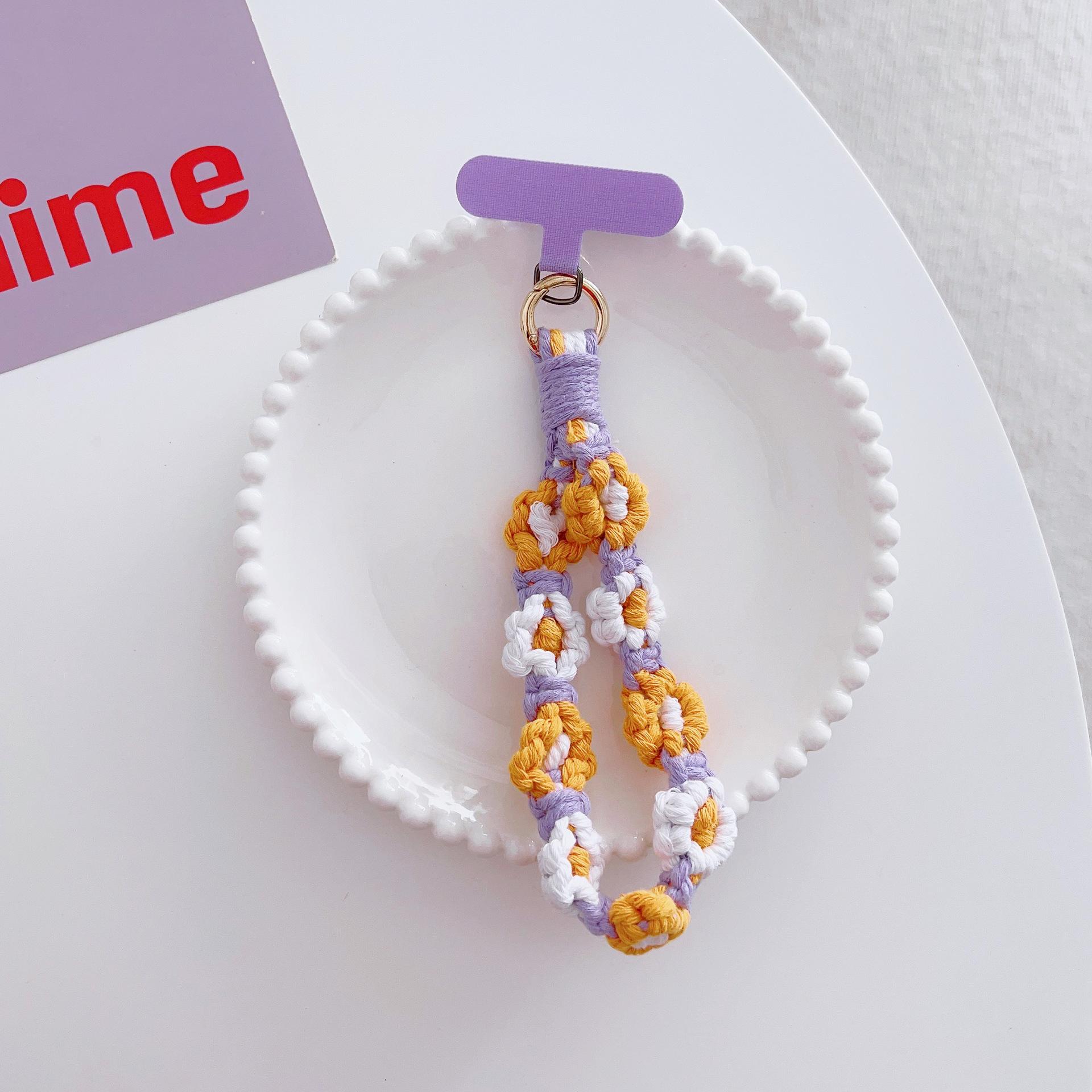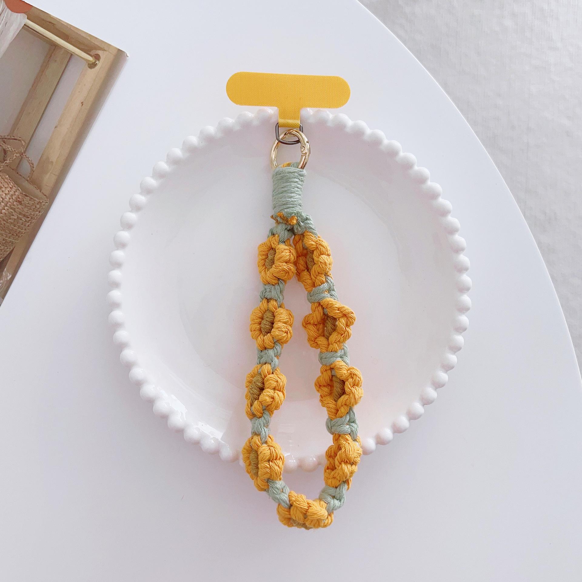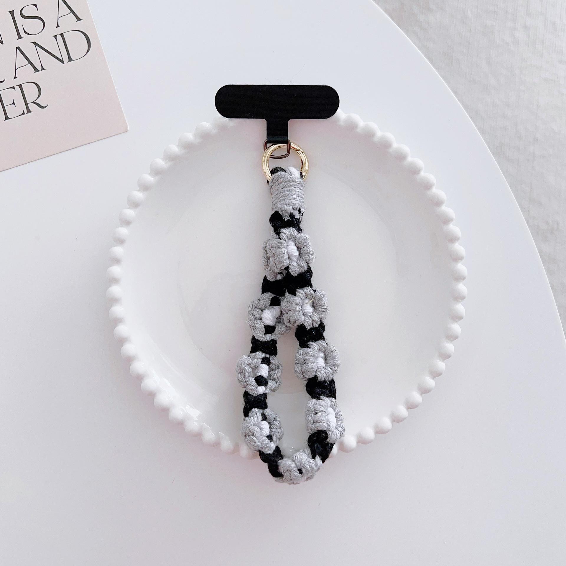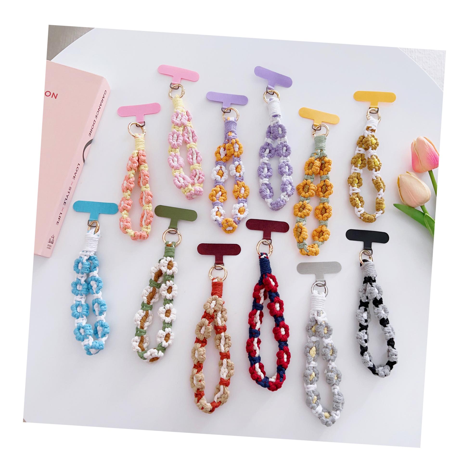 [Nombre del producto]: Adornos de cordón para teléfono móvil flores tejidas colgante portátil anti-pérdida accesorios de moda muñeca corto cadena para funda de teléfono móvil