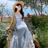 Vestido playero de verano para mujer, estilo Bali, con tirantes y falda larga, estilo hada suave y ancho de una pieza.
