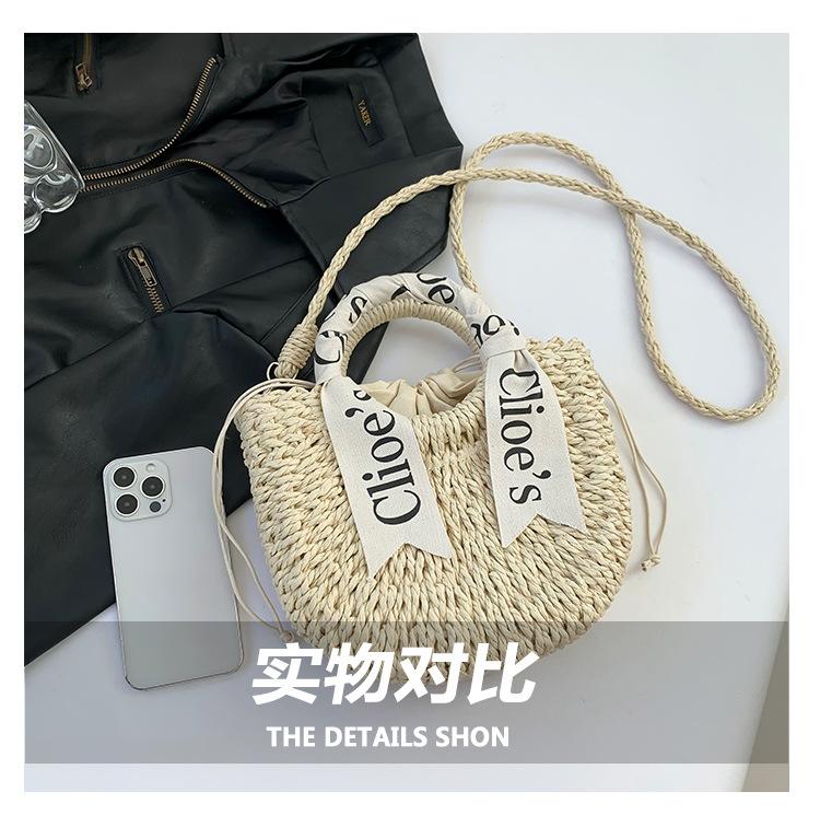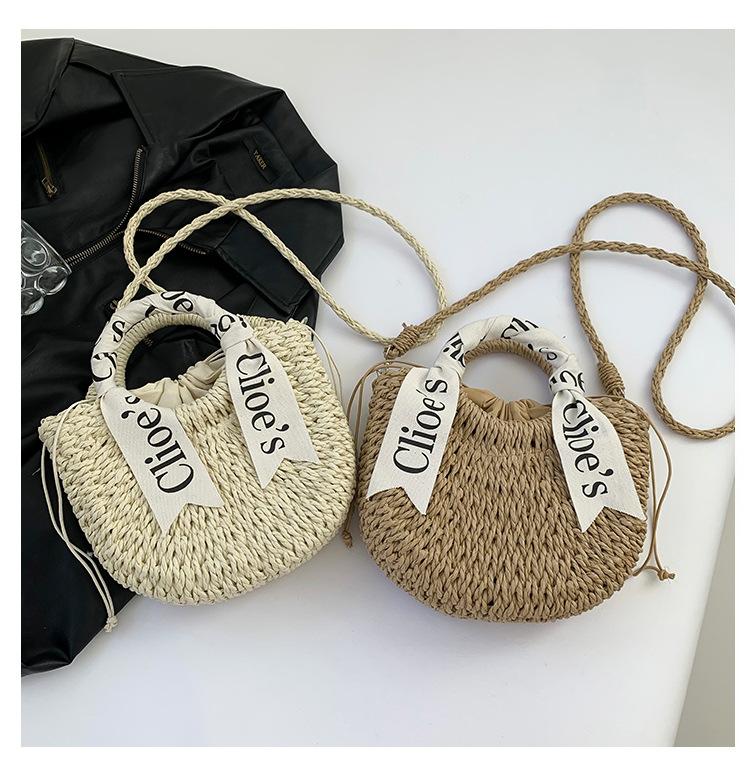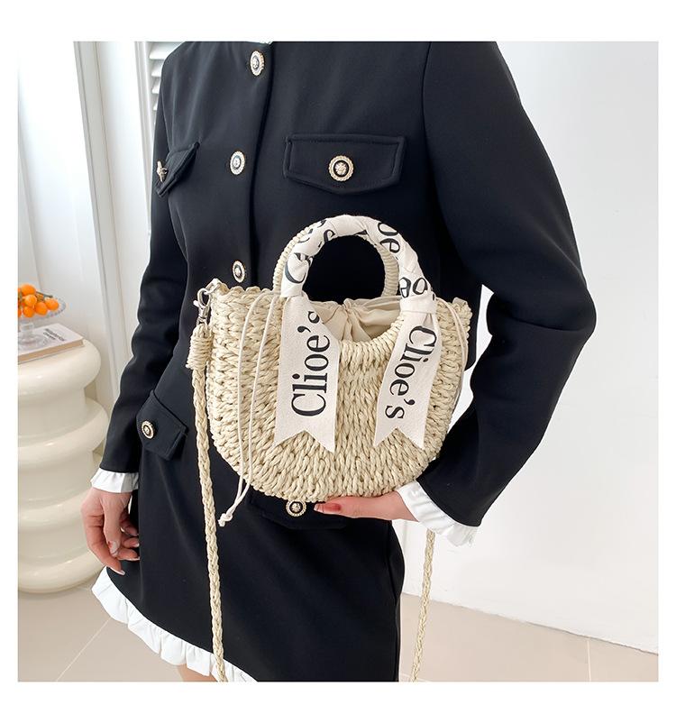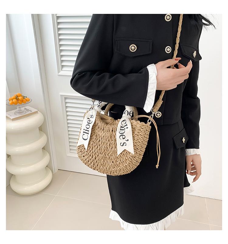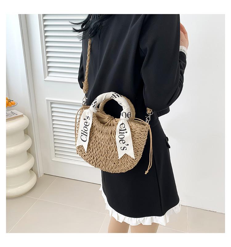 Bolso bandolera pequeño ligero para niñas estilo occidental lindo Primavera Bolso de paja con lazo para niños accesorios para bebés de jardín de infantes monedero