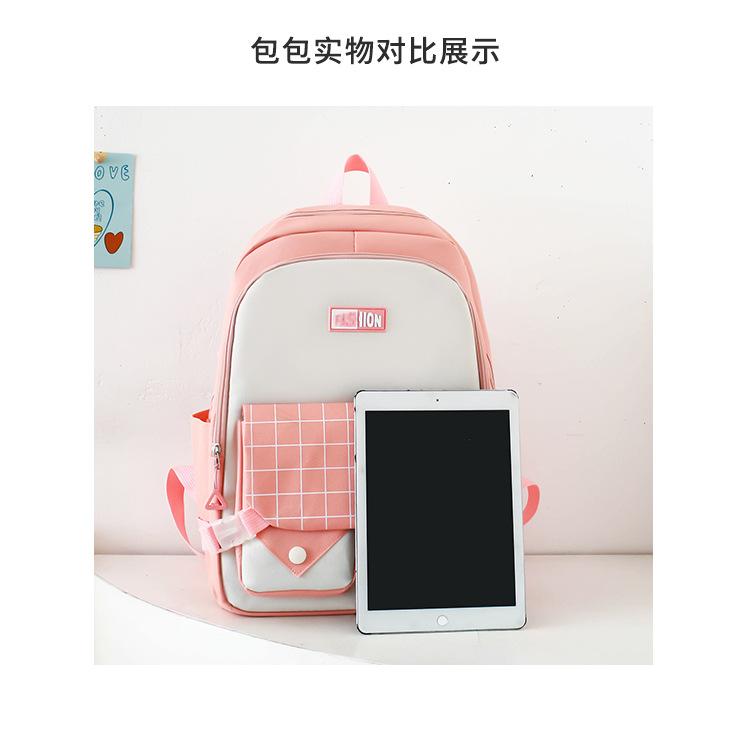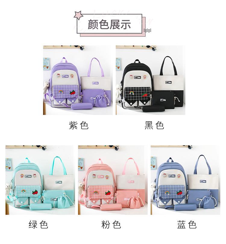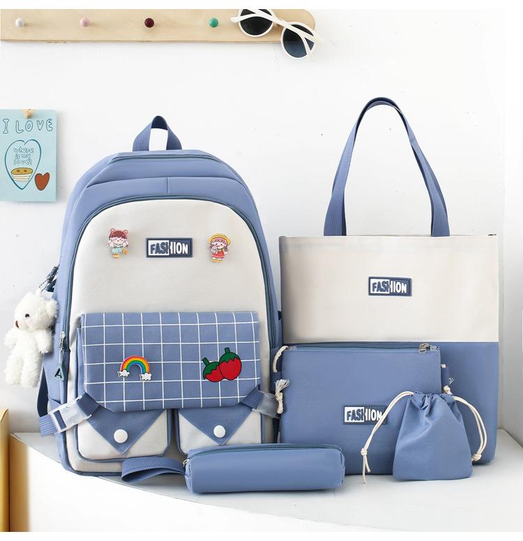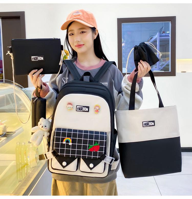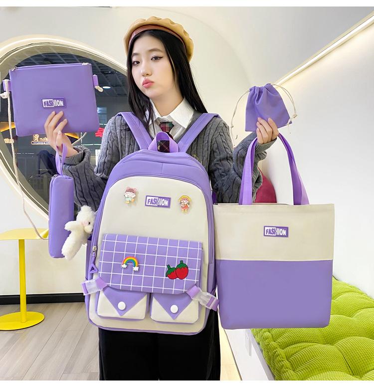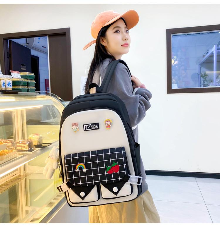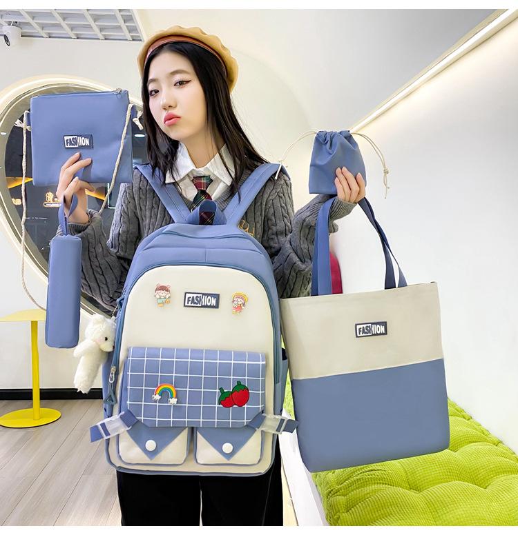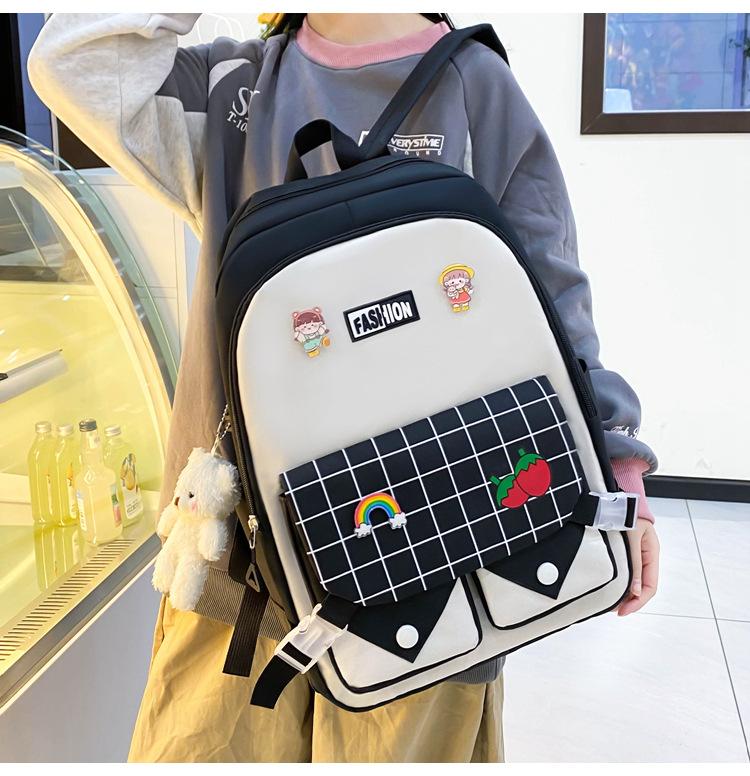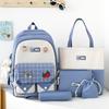 Mochila escolar transfronteriza nueva para mujer, mochila de gran capacidad para escuela secundaria, mochila de moda para todo tipo de combinaciones, mochila a cuadros de cinco piezas