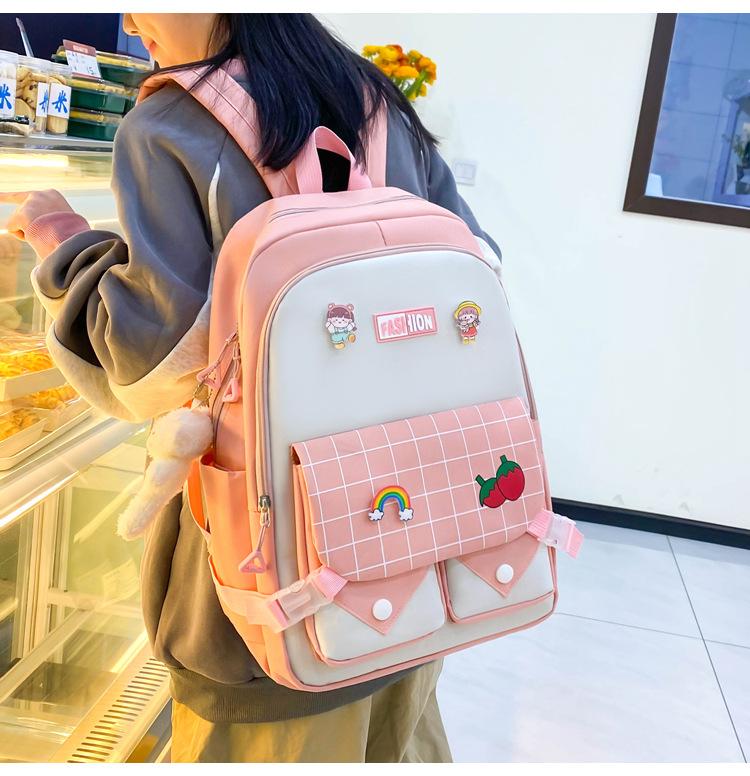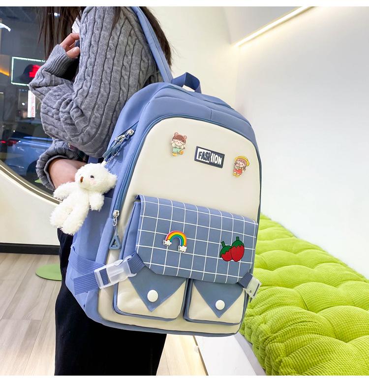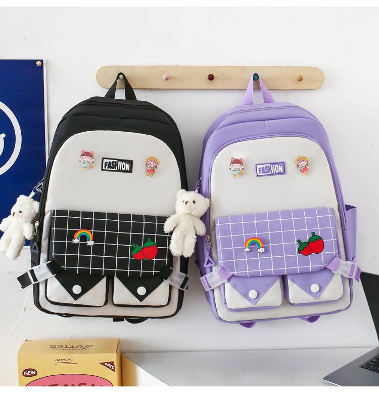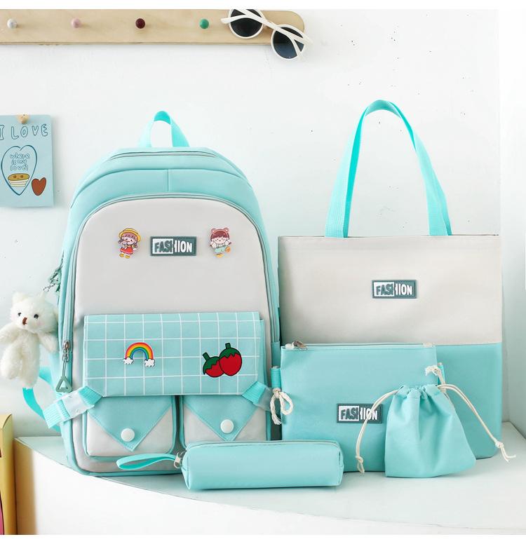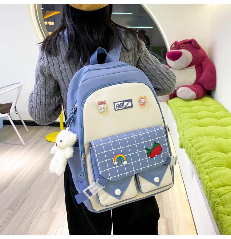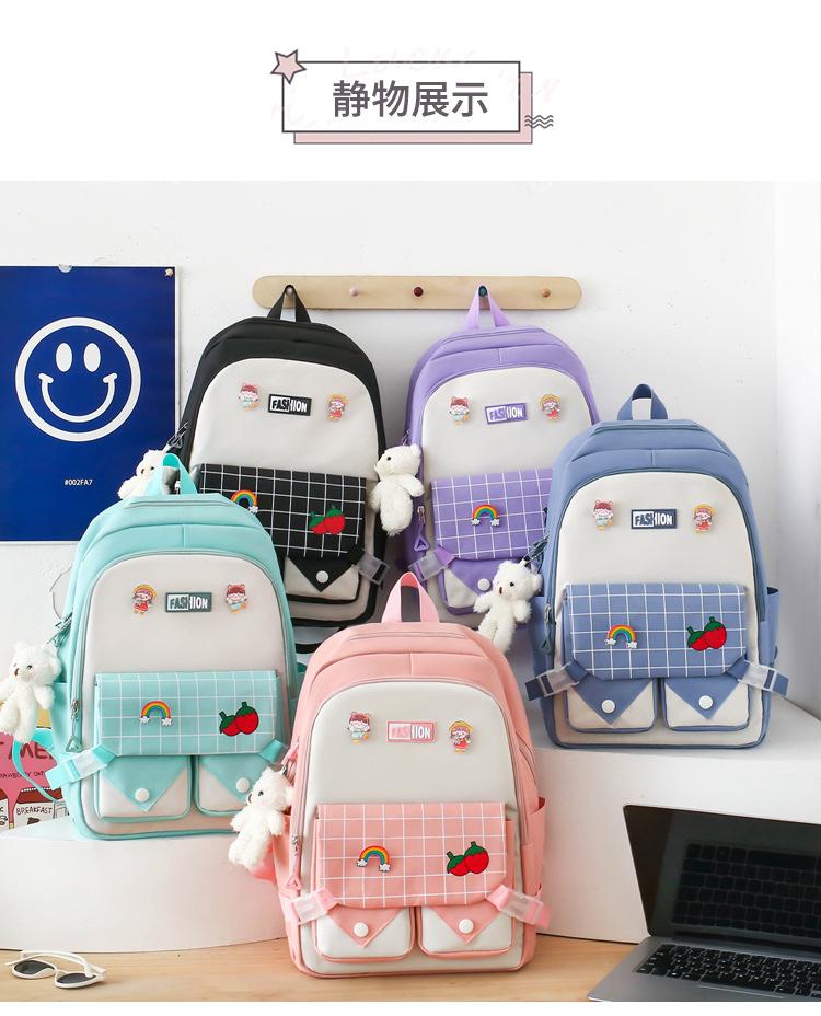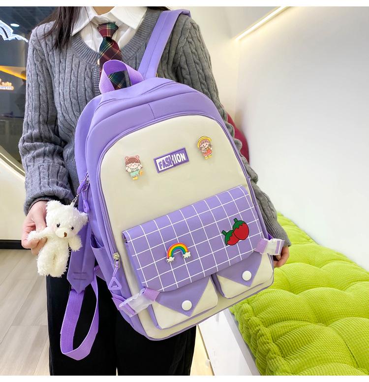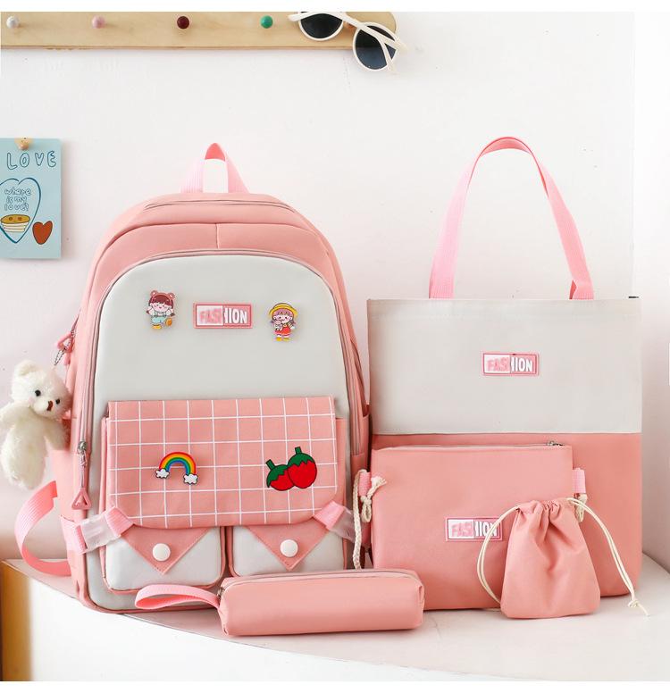 Mochila escolar transfronteriza nueva para mujer, mochila de gran capacidad para escuela secundaria, mochila de moda para todo tipo de combinaciones, mochila a cuadros de cinco piezas