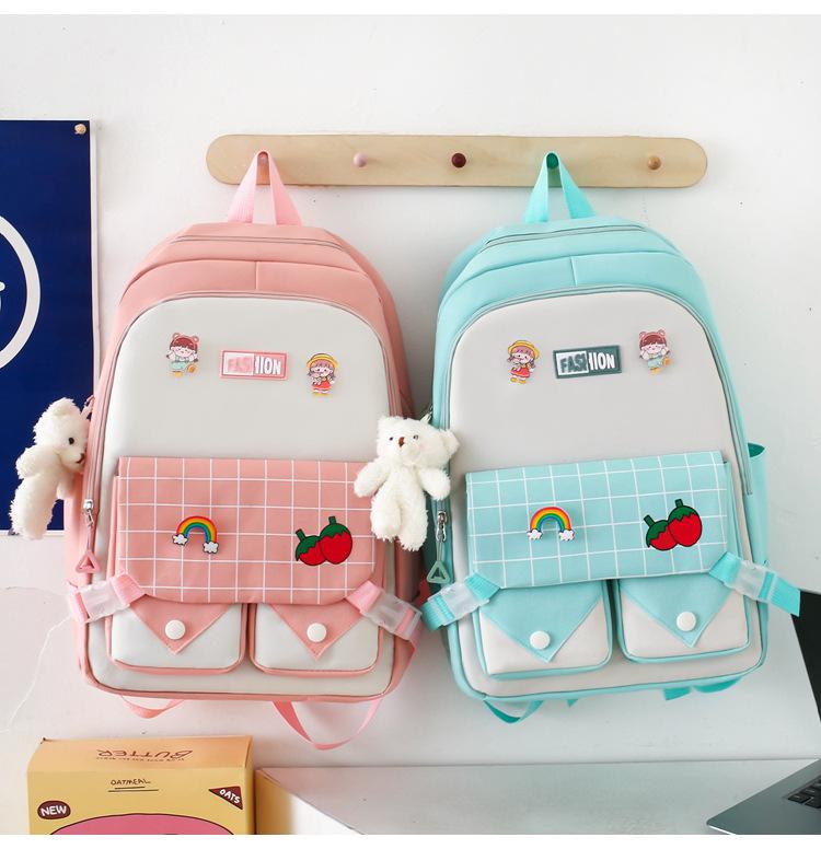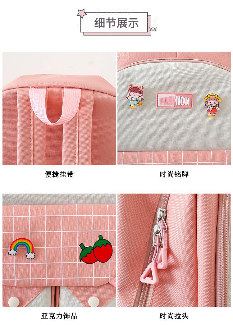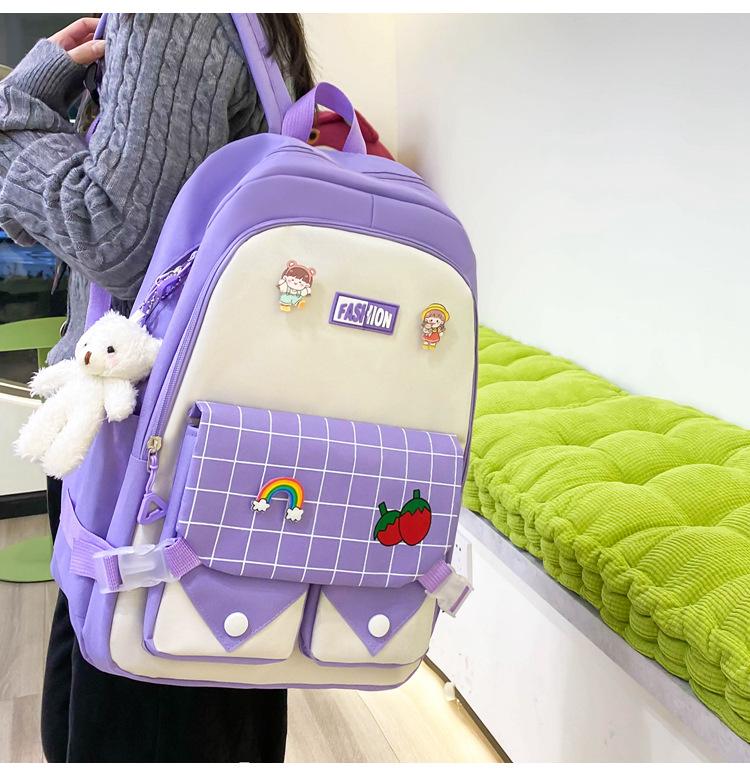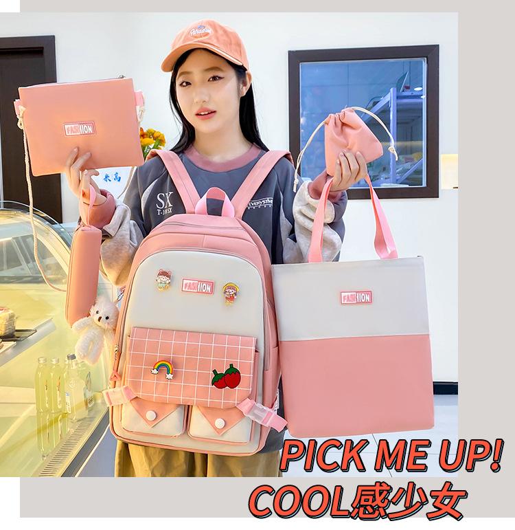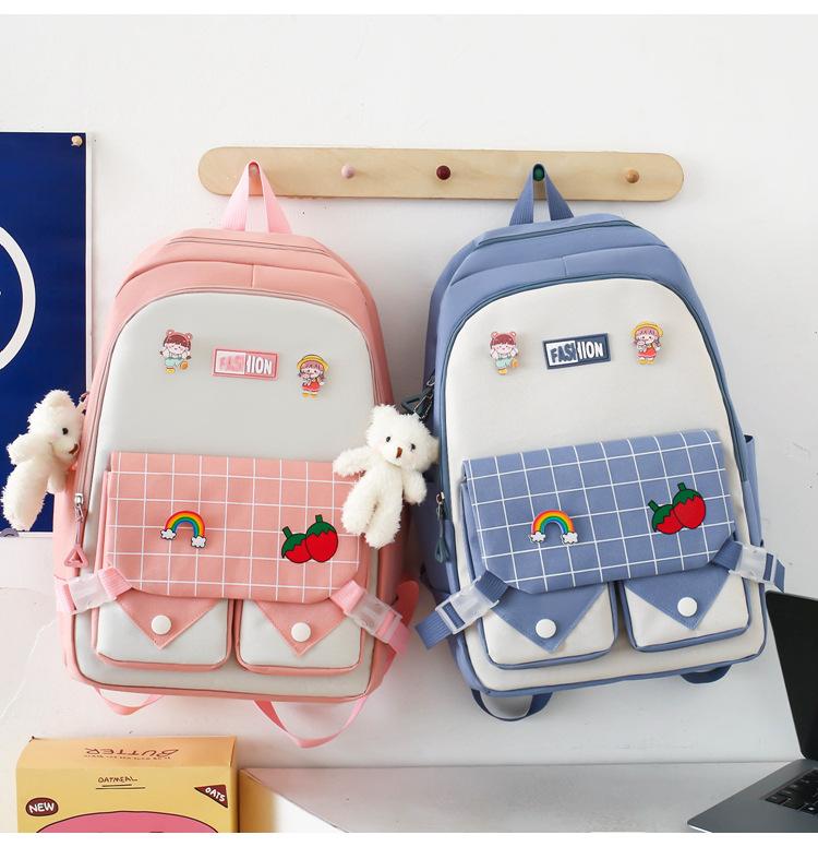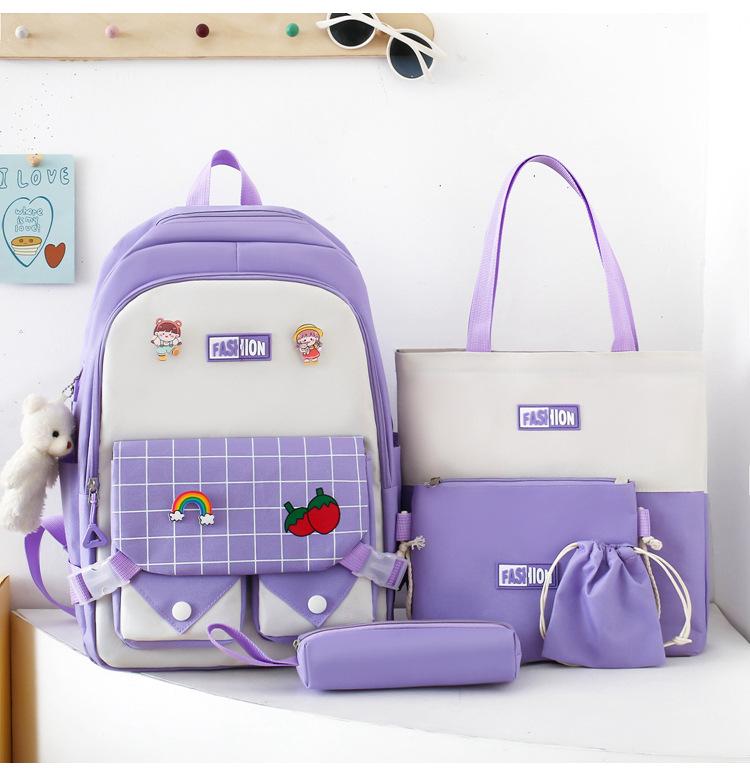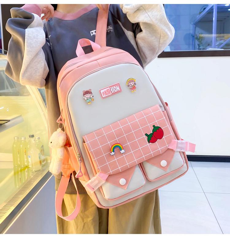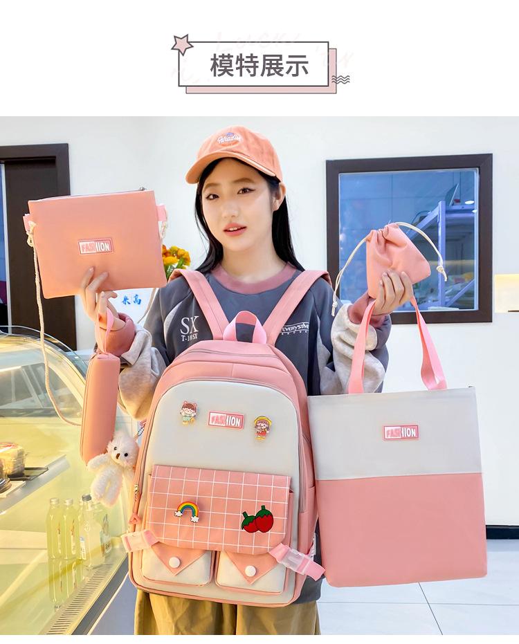 Mochila escolar transfronteriza nueva para mujer, mochila de gran capacidad para escuela secundaria, mochila de moda para todo tipo de combinaciones, mochila a cuadros de cinco piezas
