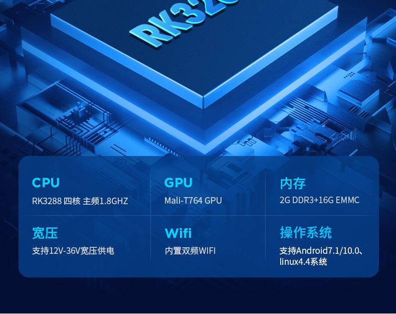 RK3568 2G+32G, RK3288 2G+16G, RK3399 4G+64G, RK3588 8G+64G
