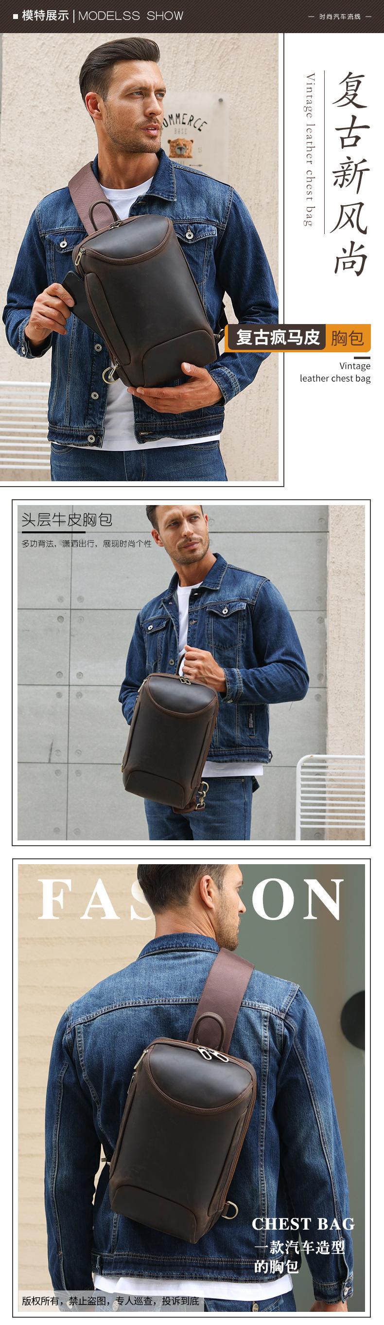Riñonera deportiva de cuero genuino para hombre, bandolera multifuncional para exteriores de gran capacidad, estilo retro europeo y americano, cuero Crazy Horse