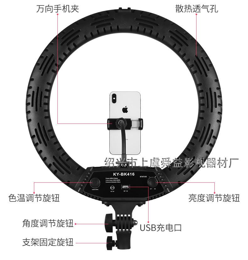 Luz de transmisión en vivo de anillo de tres colores ajustables: luz cálida, luz blanca cálida, luz blanca se puede cambiar a voluntad