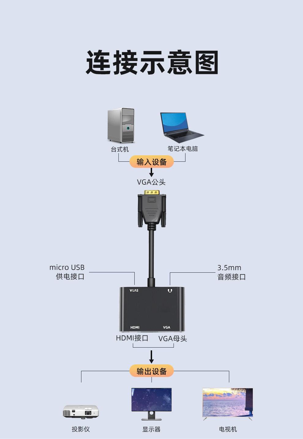 Vga a HDMI Vga Dos en Uno Cuatro en Uno Convertidor Base de Expansión Conectado a Computadora Proyector Tv