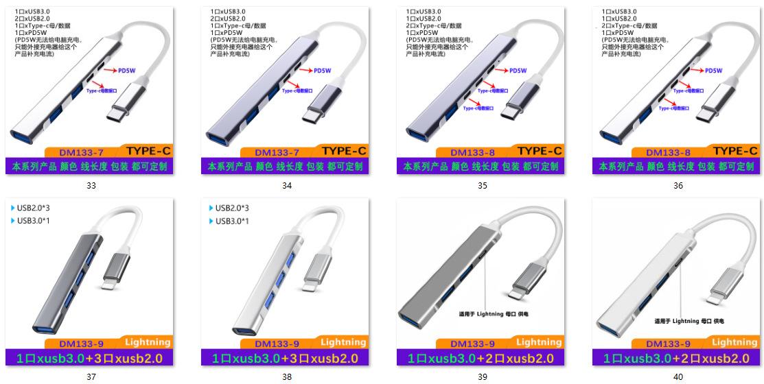 USB3.0 interface 4 port gray, Type-c interface 4 port gray, USB3.0 interface 4 port silver, Type-c interface 4...
