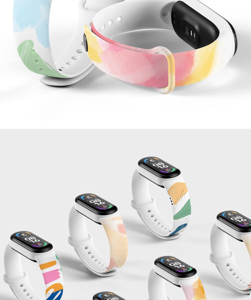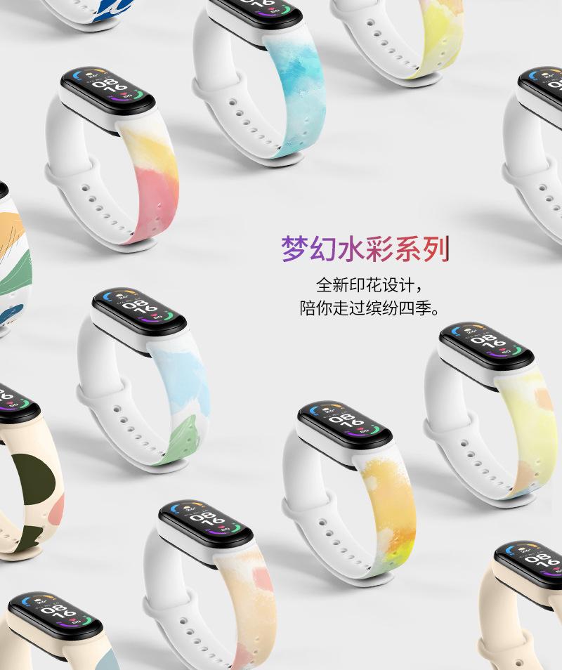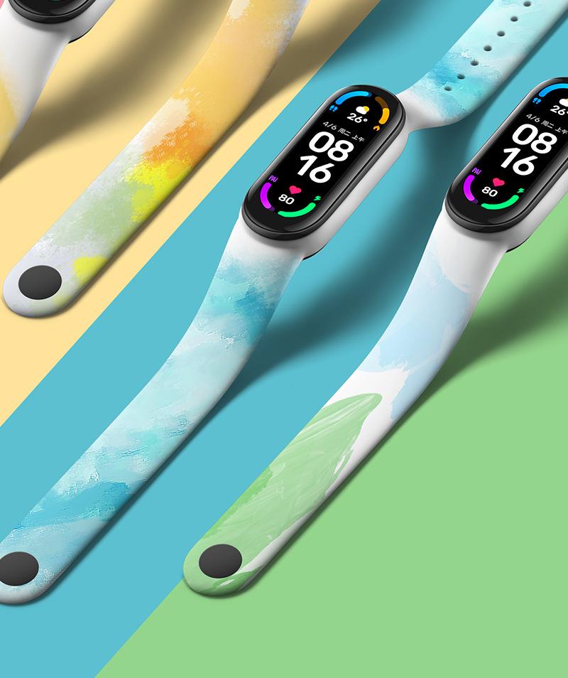 Adecuado para Xiaomi Mi Band 7/3/4/5/6 Pulsera Versión Universal NFC Correa de Repuesto Acuarela para Hombre y Mujer Verano Combinación de Colores Versátil