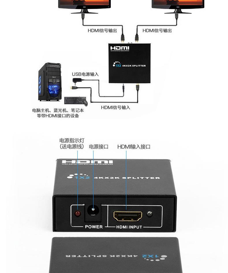 Distribuidor HDMI uno a dos divisor de pantalla HDMI HD 1 a 2 uno de entrada dos de salida divisor HDM 4K