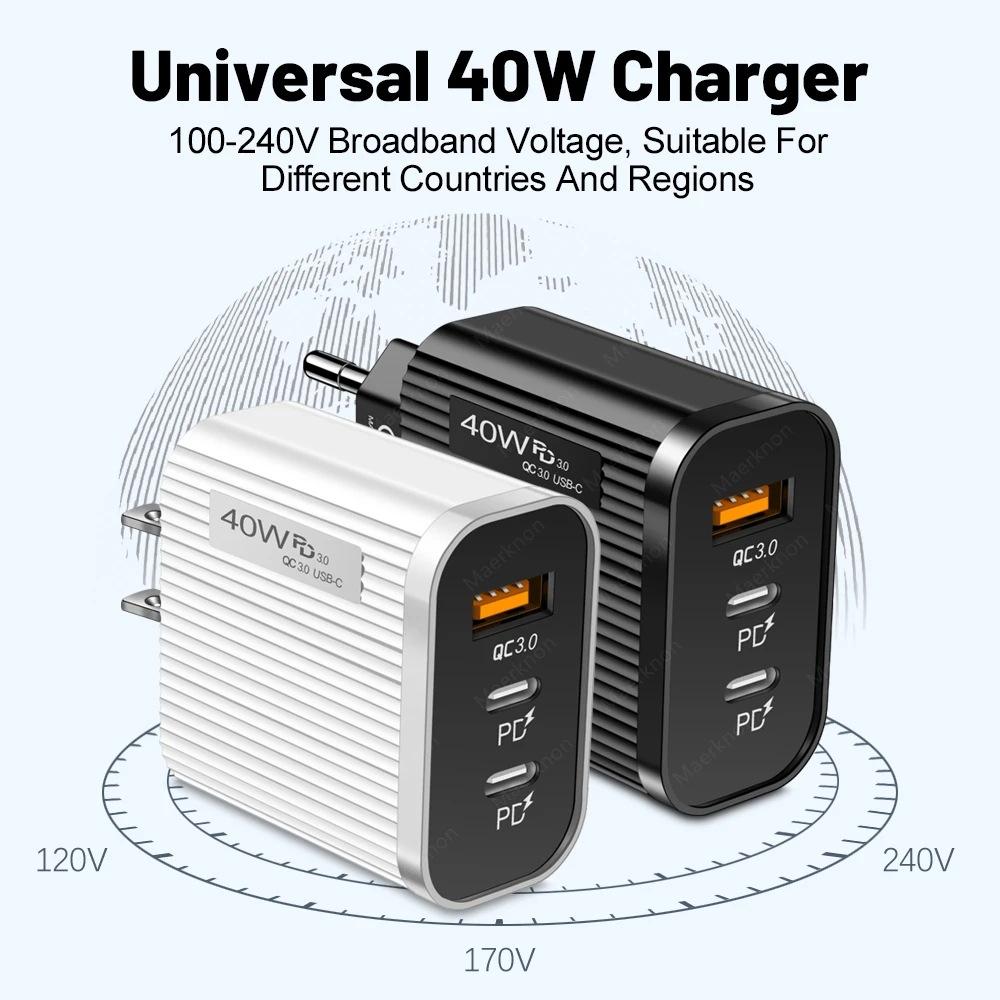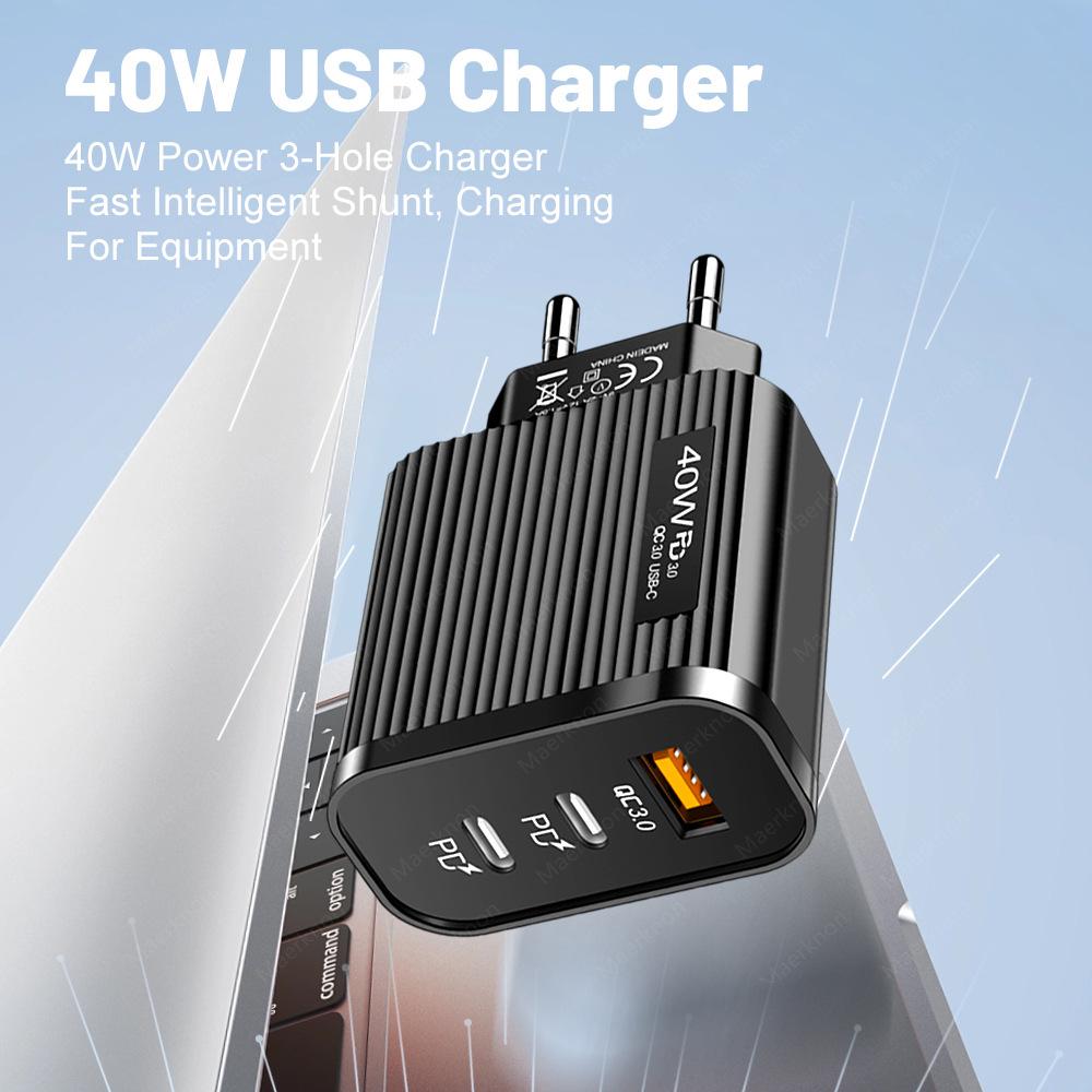 Cabezal de carga dual Pd+Usb Puerto Typec Adecuado para carga rápida Apple/Android Adaptador multipuerto europeo/estadounidense