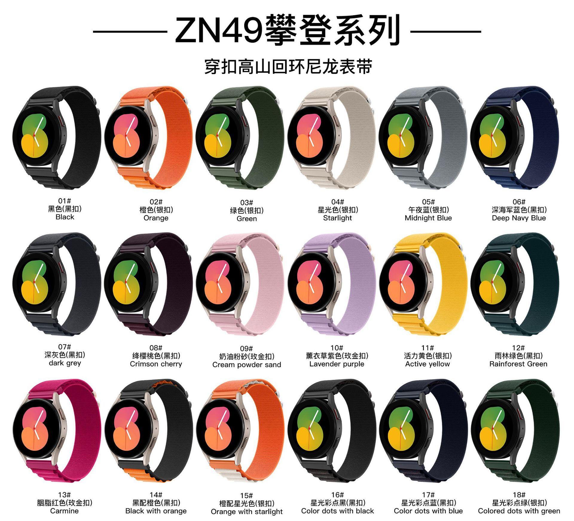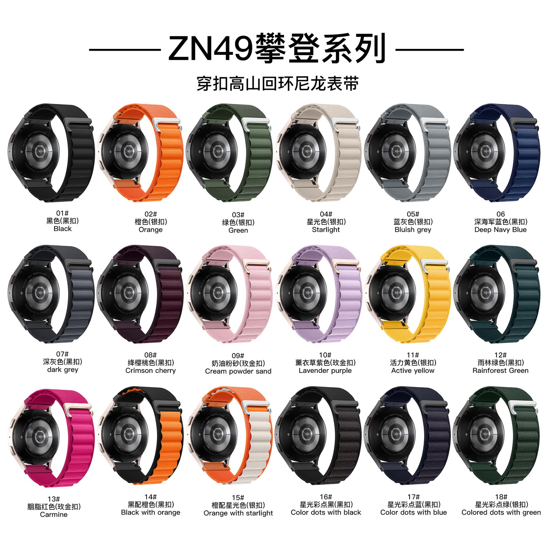 Correa de nailon con hebilla de bucle alpino serie escalada ZN49, compatible con Samsung, Huawei, Xiaomi, Garmin y otros relojes inteligentes de 20 mm y 22 mm.