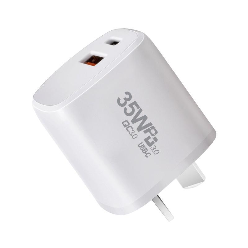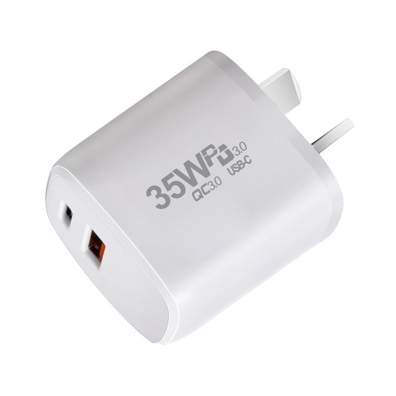 Cargador de nitruro de galio de 35 W Adaptador PD + QC3.0 de enchufe australiano es adecuado para carga directa de 35 W para teléfono móvil Apple 15