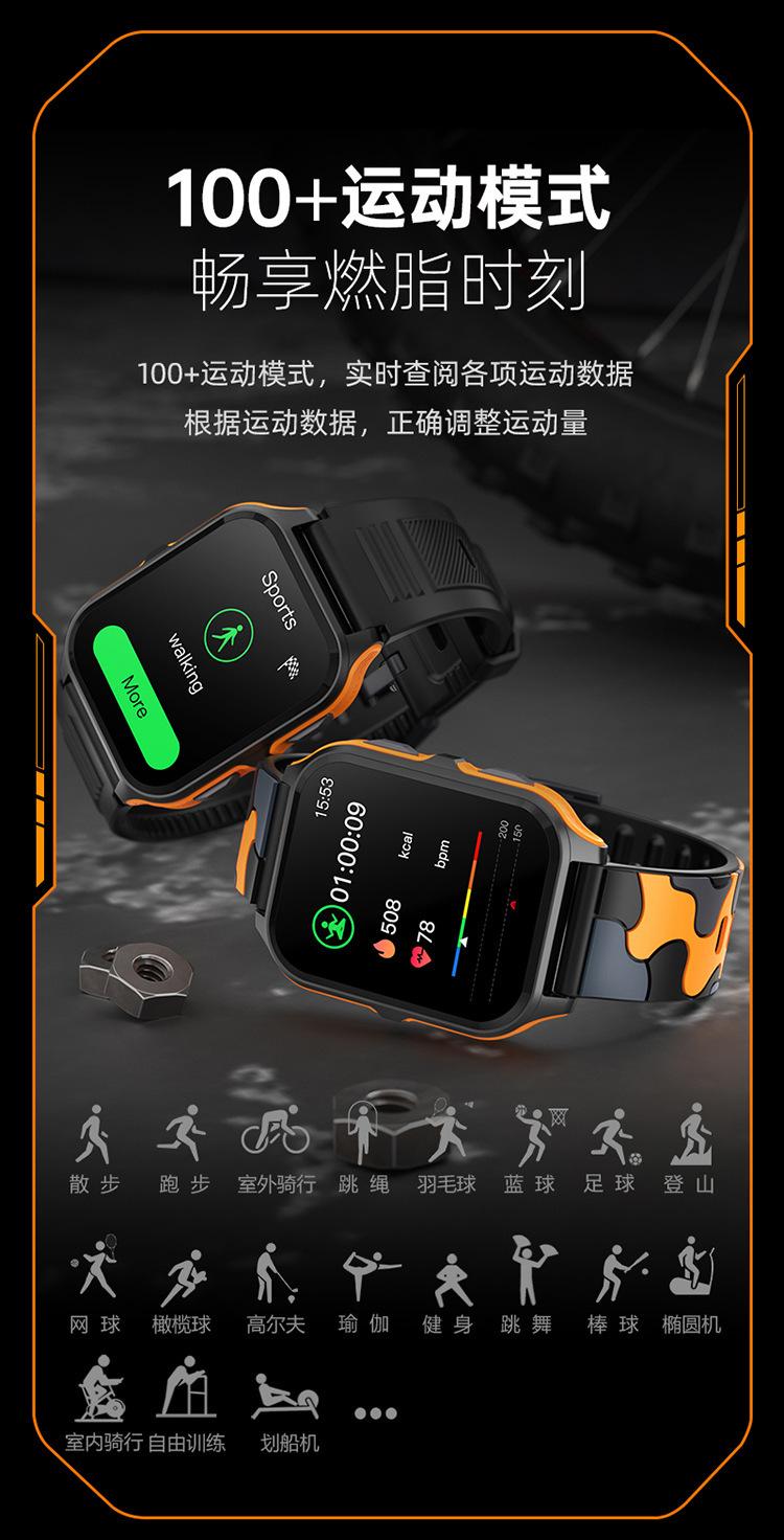 Nuevo reloj inteligente P73 transfronterizo con asistente de voz y llamadas Bluetooth, pulsera inteligente para exteriores a prueba de tres pruebas, reloj deportivo