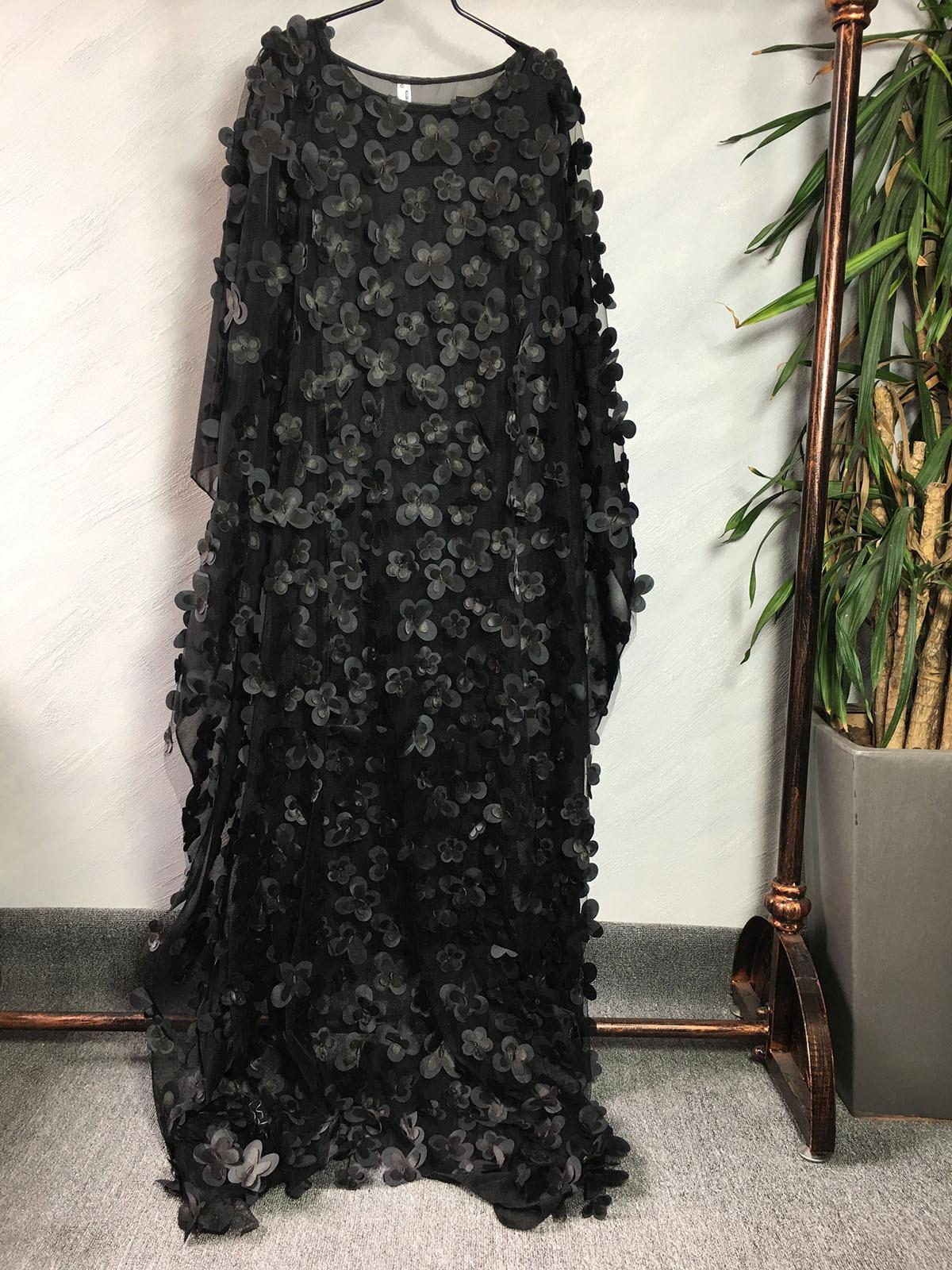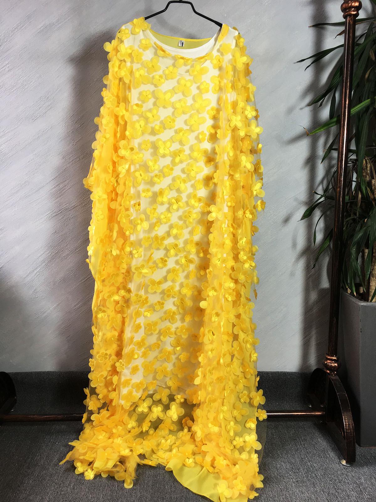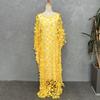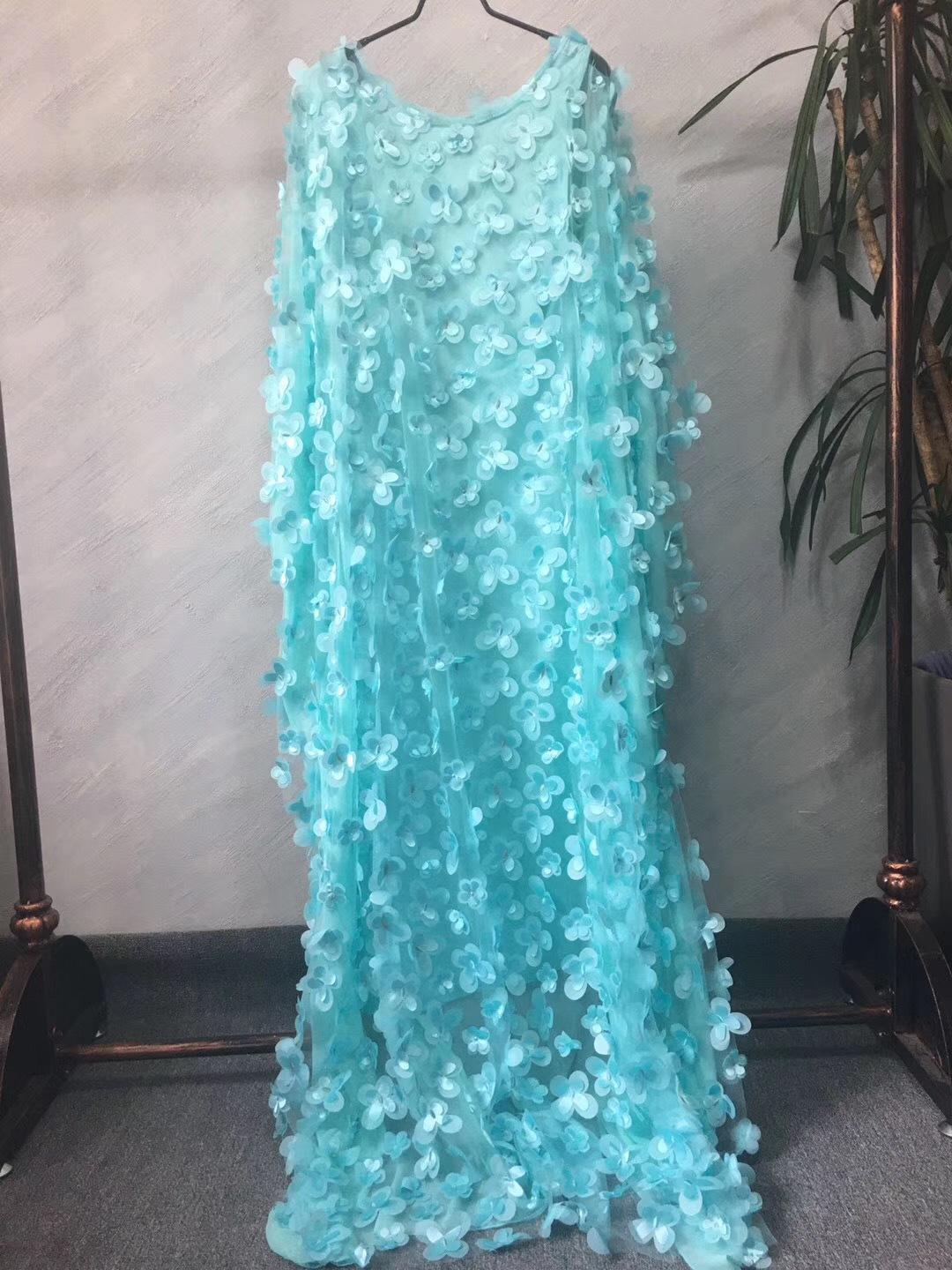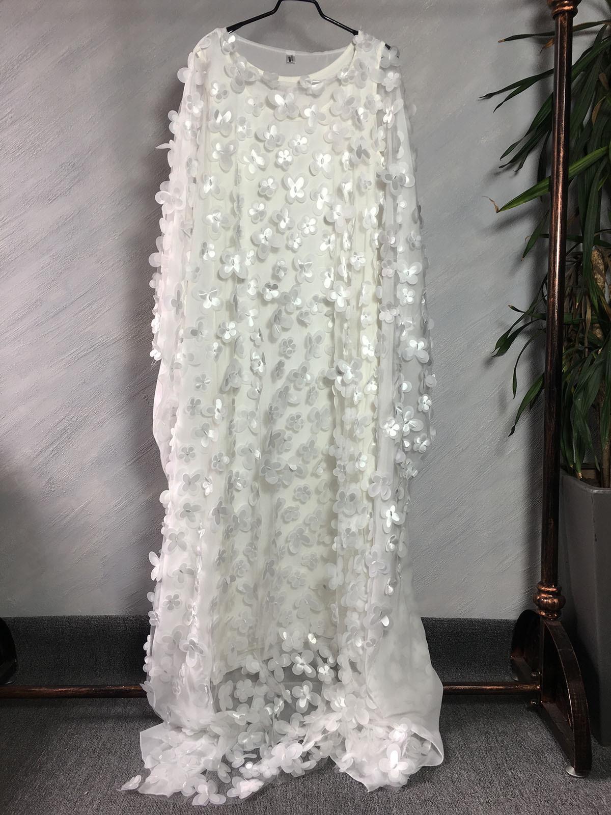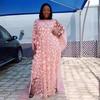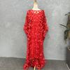 Fuente transfronteriza bordado tridimensional de flores malla cuello redondo manga murciélago holgado talla grande bata chaleco africano para mujer transparente