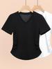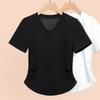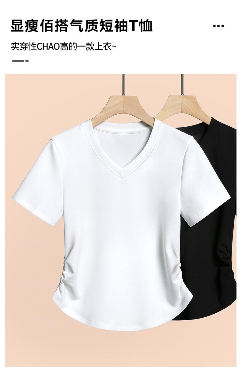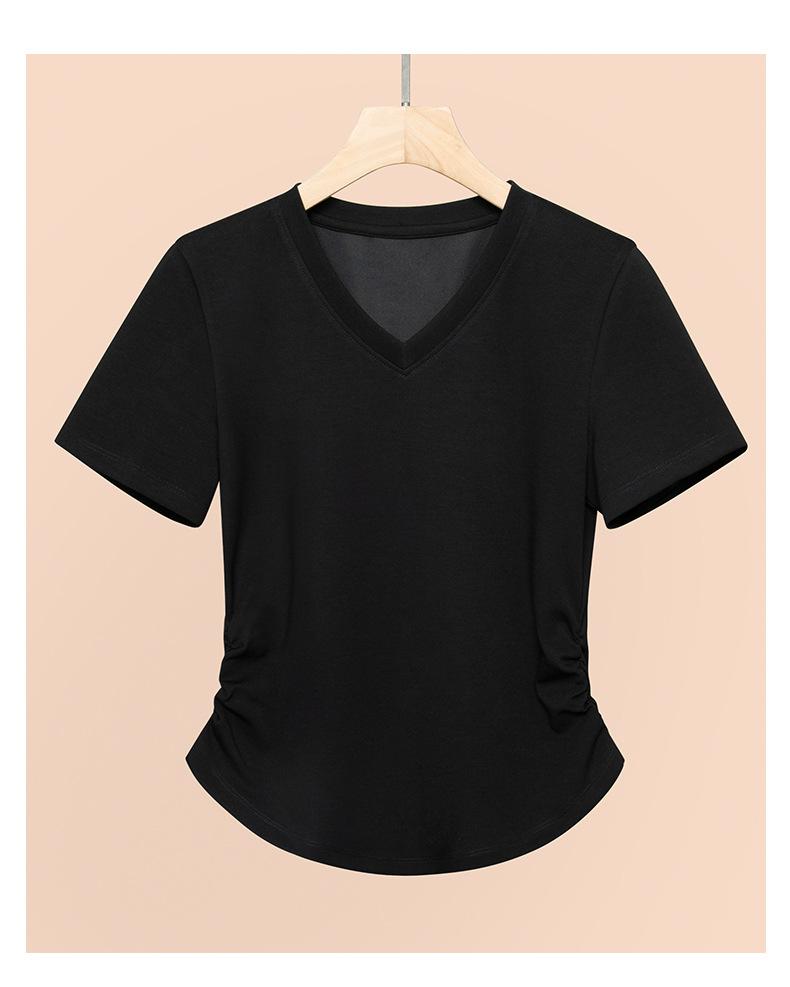 Verano 2025 Nueva Camiseta de Hombro con Cuello en V de Manga Corta para Mujer Combinación Total Ajustada Cintura Adelgazante Sensación de Alta Gama Top Nicho Ins