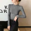 Camisa de terciopelo para mujer, otoño e invierno, estilo coreano, corte entallado, para estudiantes, ropa interior cálida para niña, camiseta de manga larga con cuello alto medio